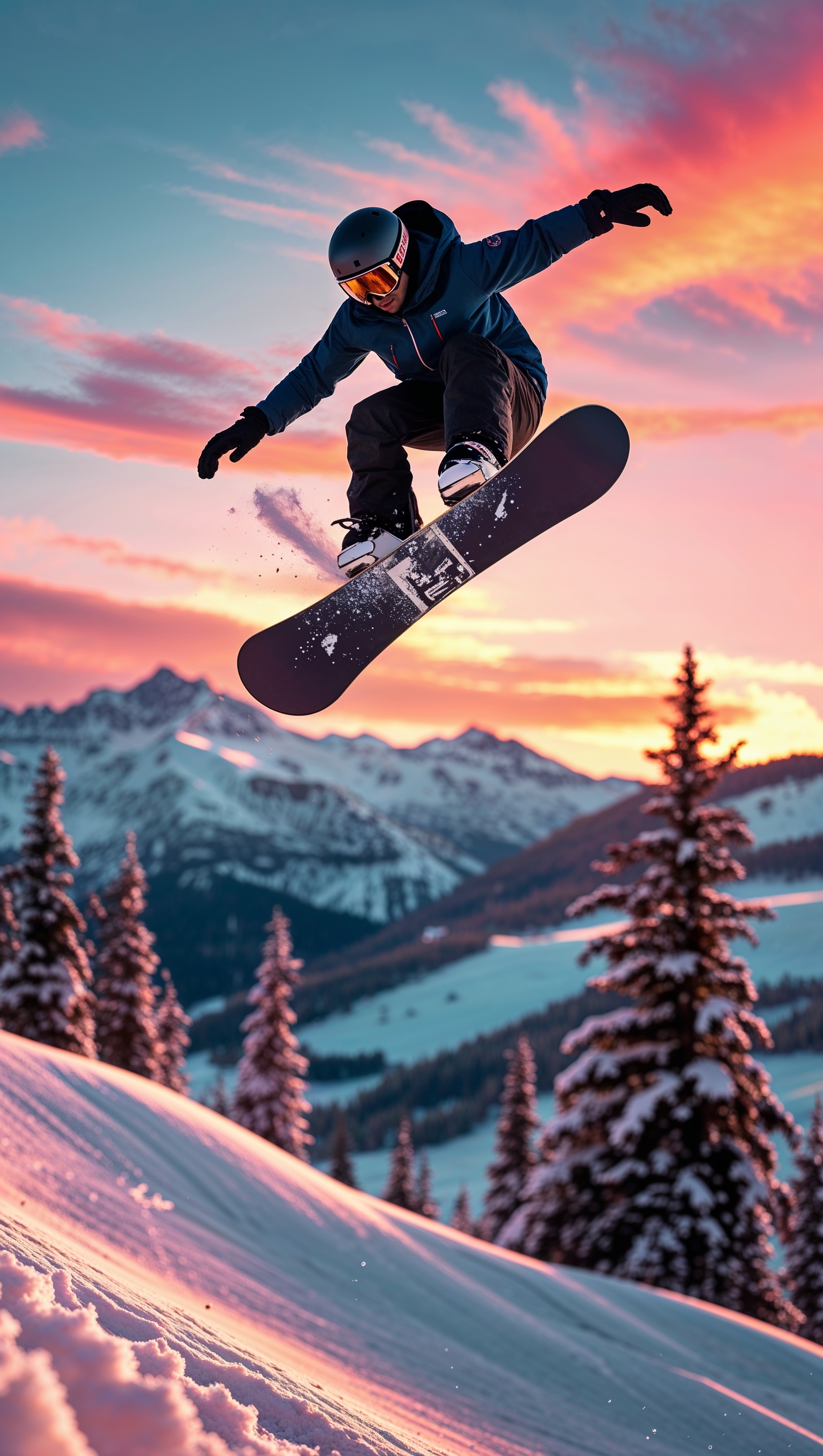 1664x2944 A snowboarder performing a jump in the sunset, ultra HD, iPhone wallpaper