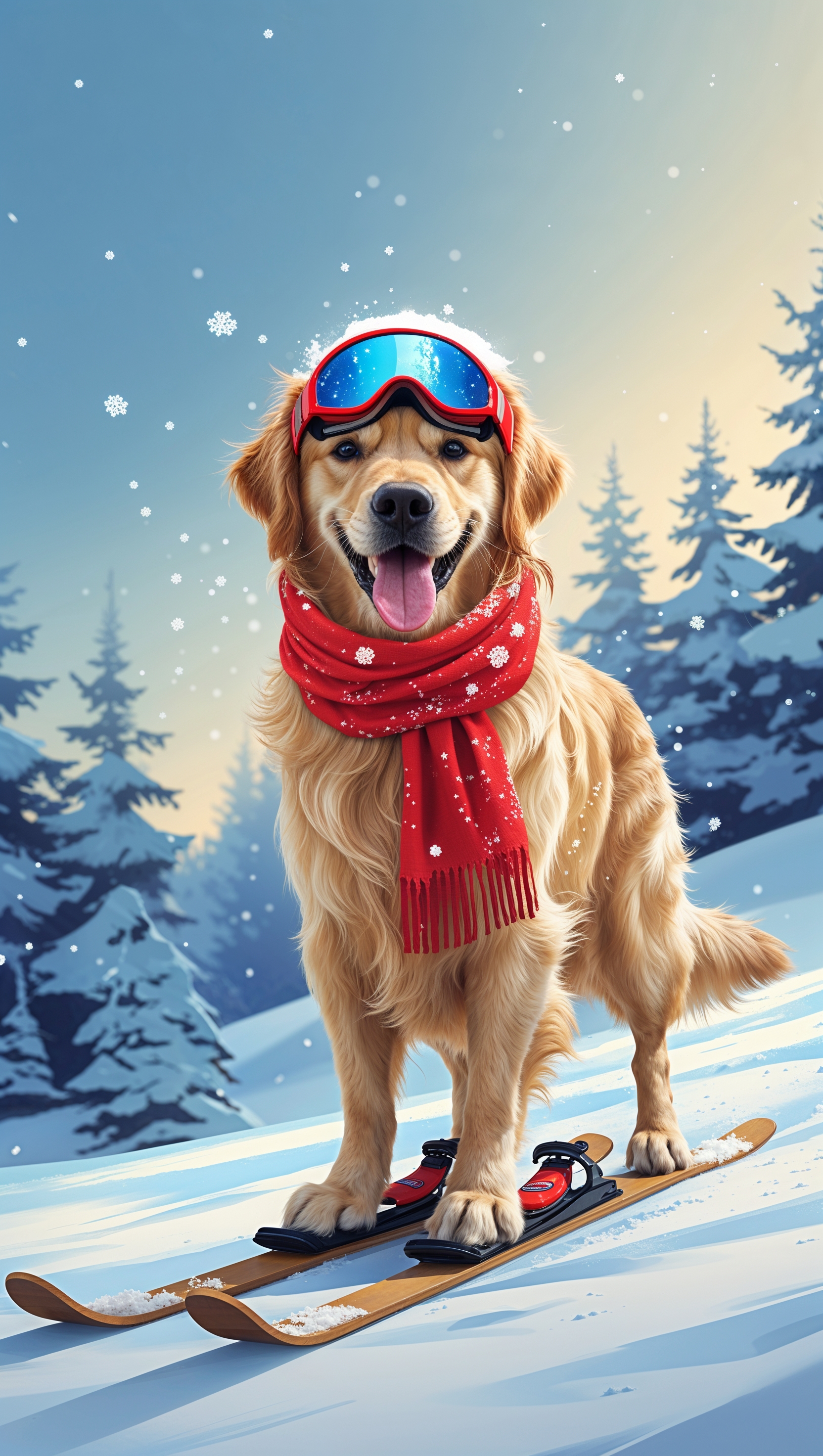 1664x2944 A dog wearing ski gear on a snowy hill, funny winter wallpaper