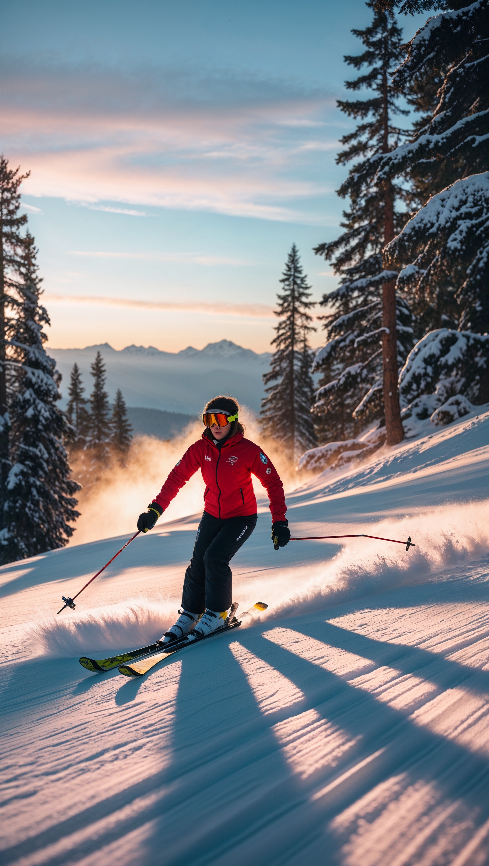 1664x2944 Early morning ski run with long shadows, cinematic look