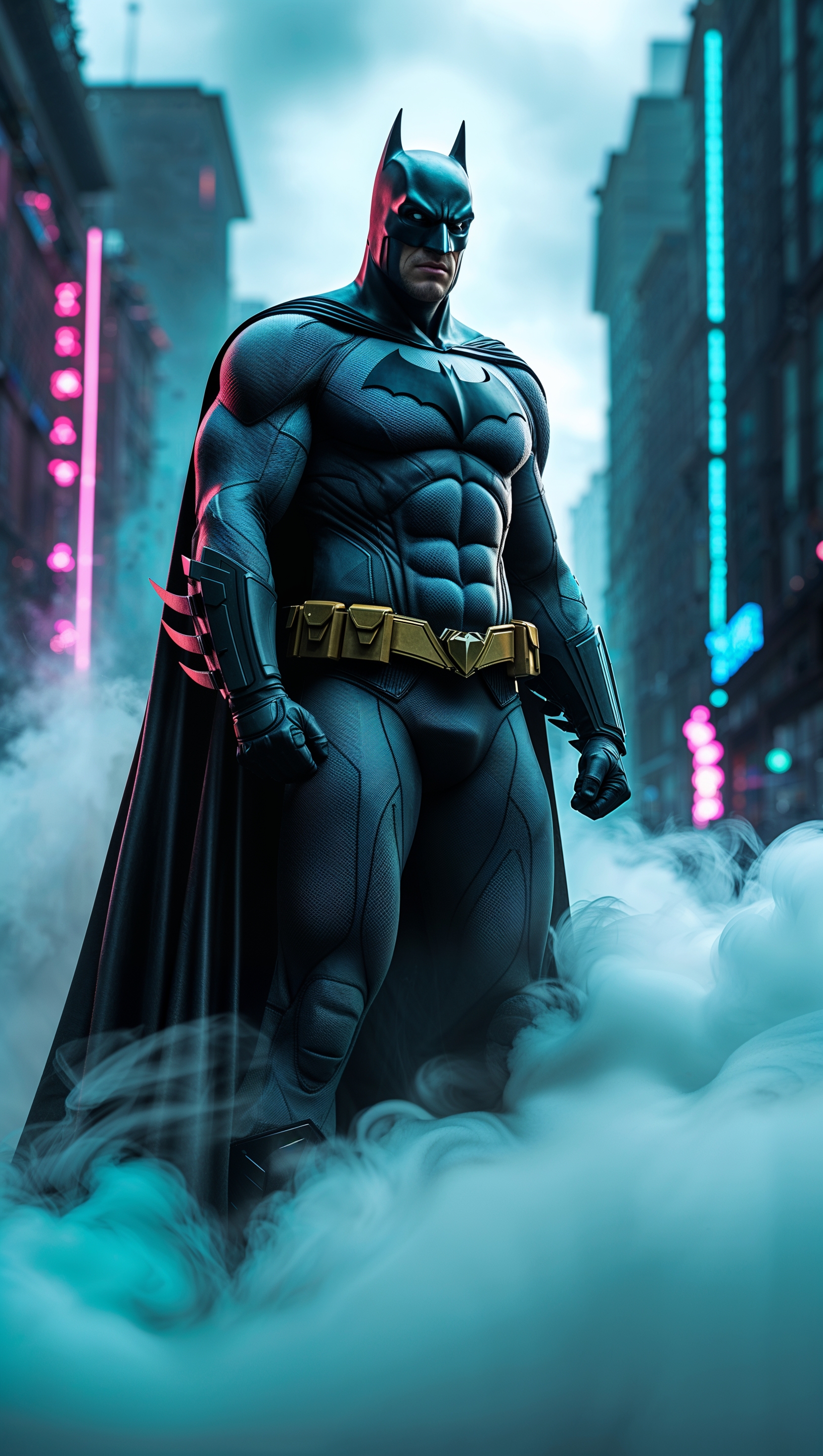 1664x2944 Batman surrounded by smoke and neon lights, 4K iPhone wallpaper