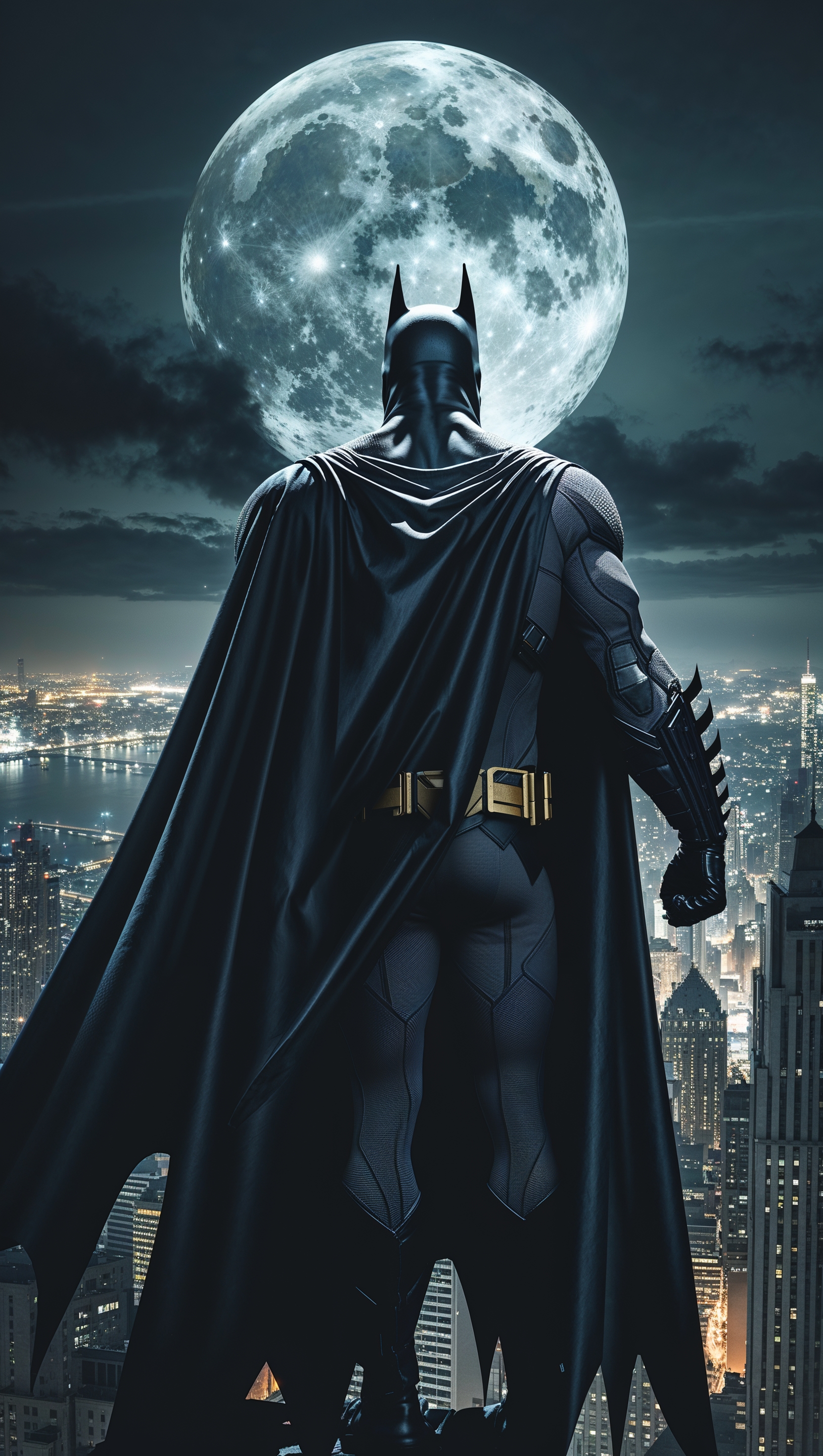 1664x2944 Batman under moonlight on a tall building, 4K iPhone wallpaper