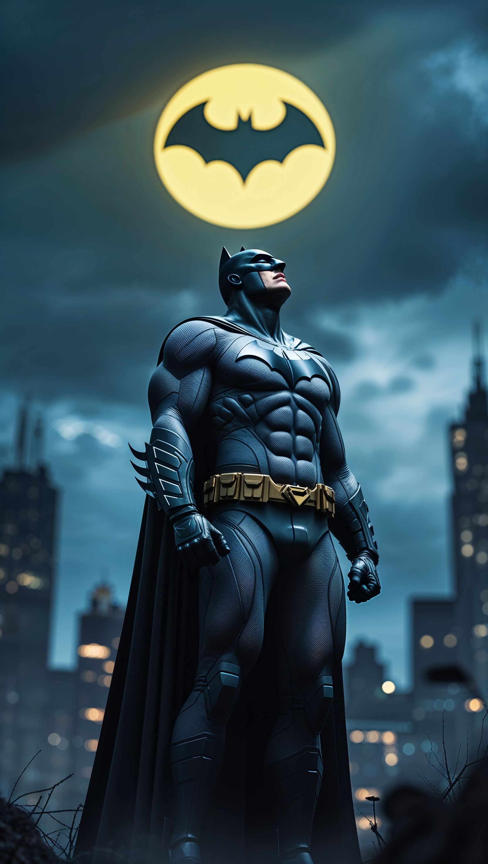 1664x2944 Batman next to the Bat-Signal in the sky, 4K iPhone wallpaper