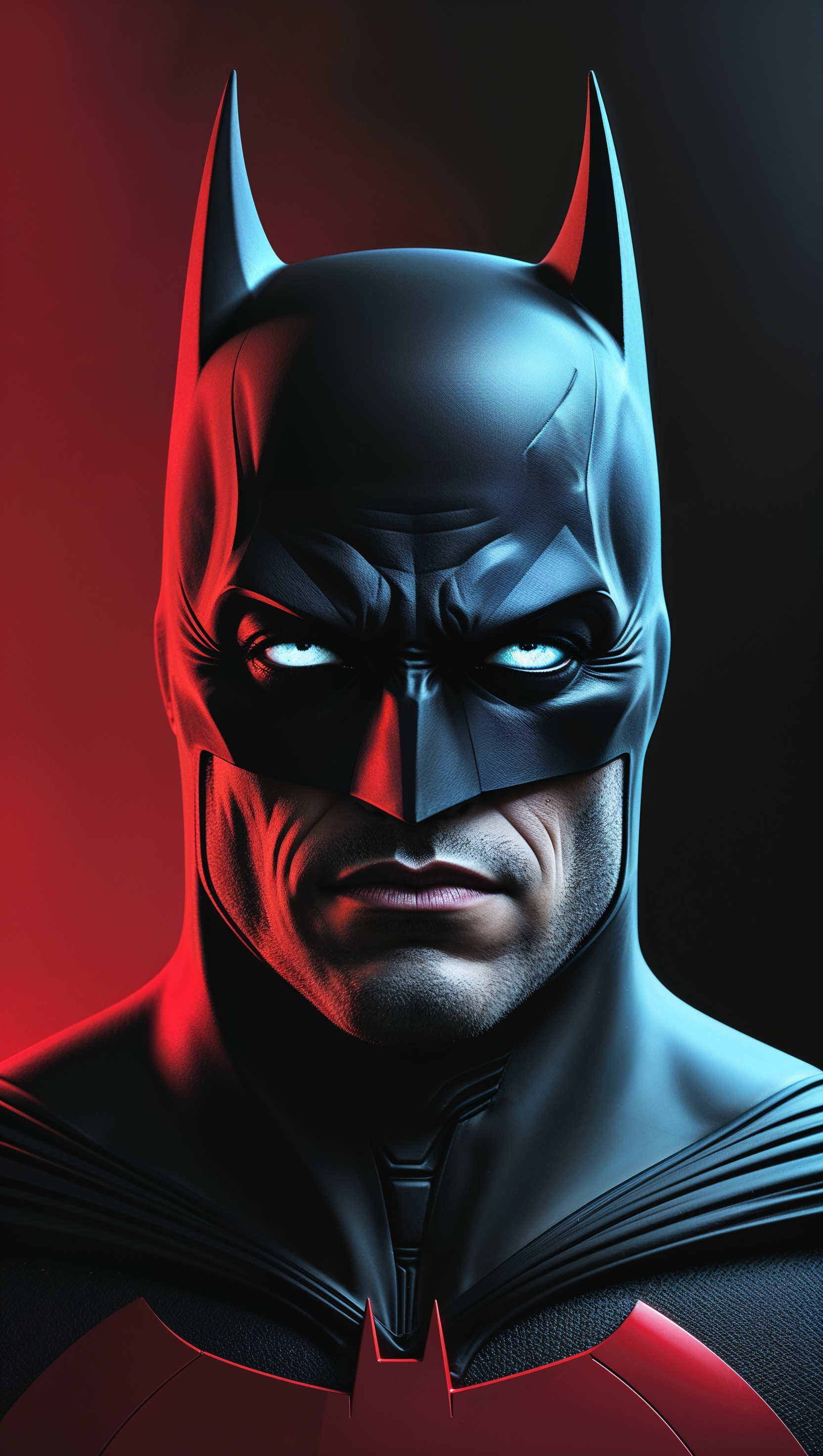 1664x2944 Artistic portrait of Batman with red and black background, 4K iPhone wallpaper