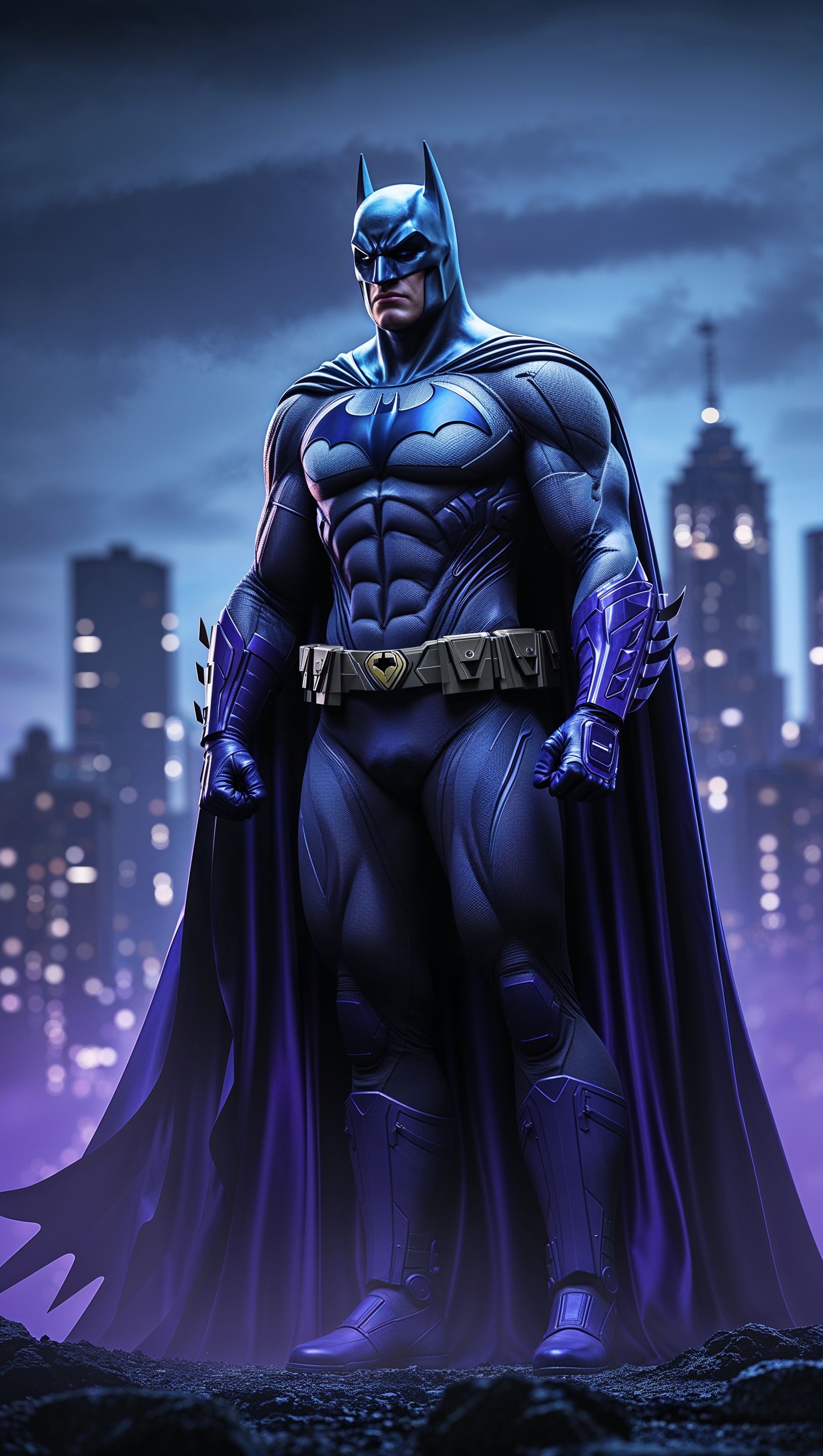 1664x2944 Batman at night with purple and blue color scheme, 4K iPhone wallpaper