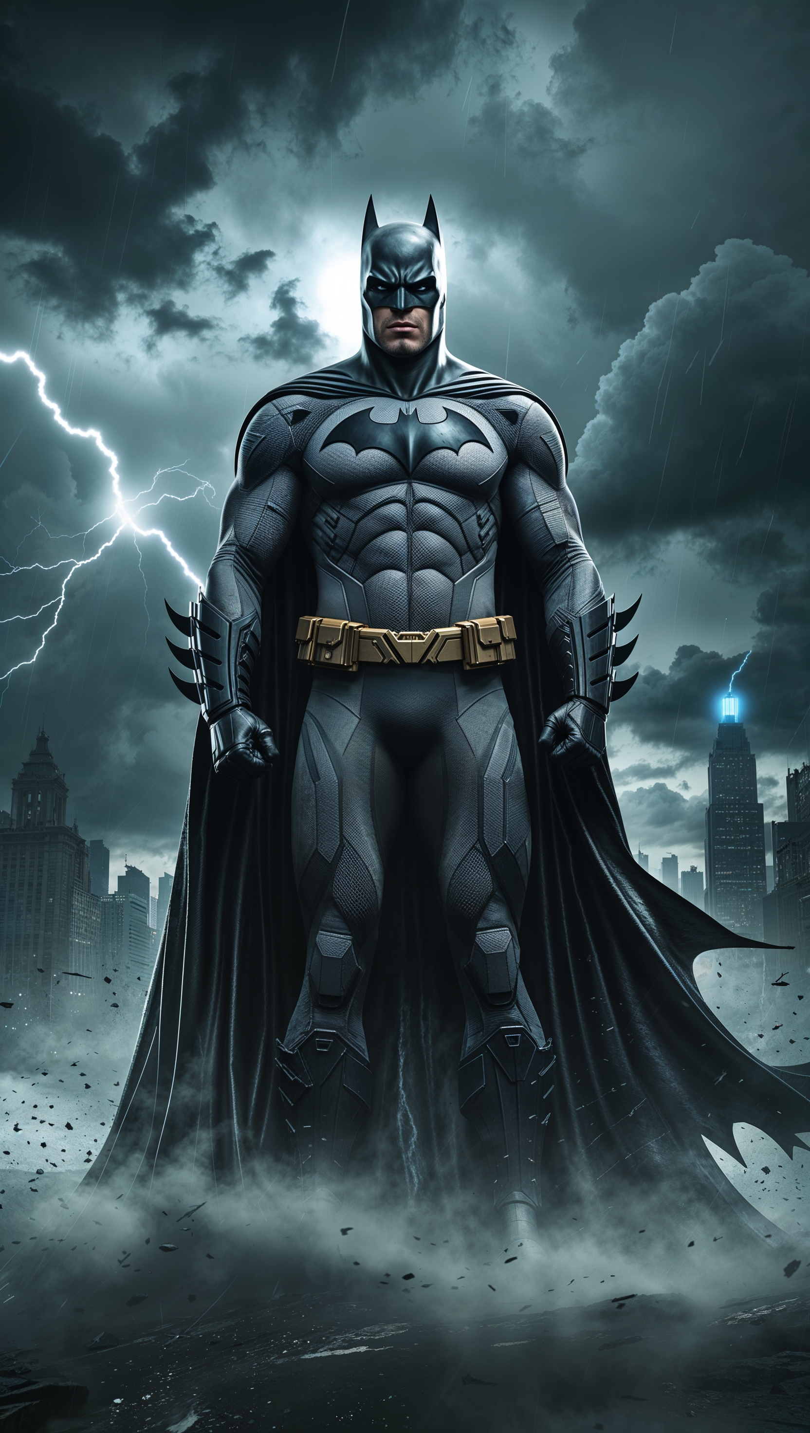 1664x2944 Batman in a storm with a black cape, 4K iPhone wallpaper