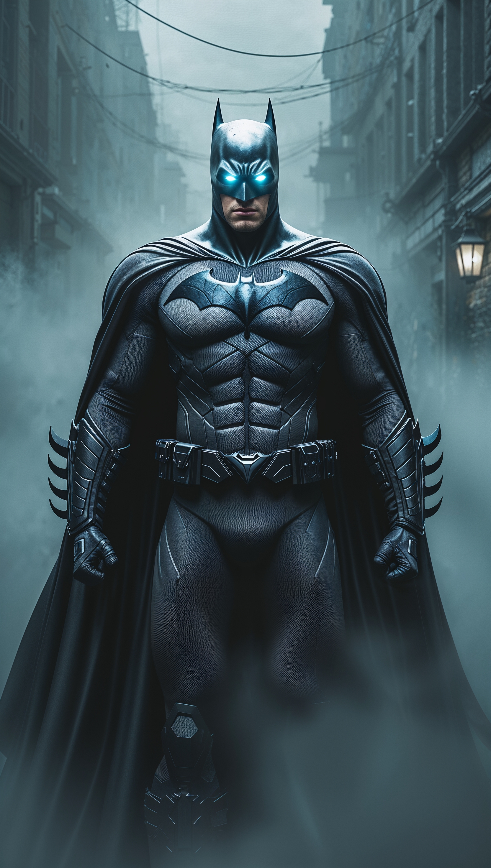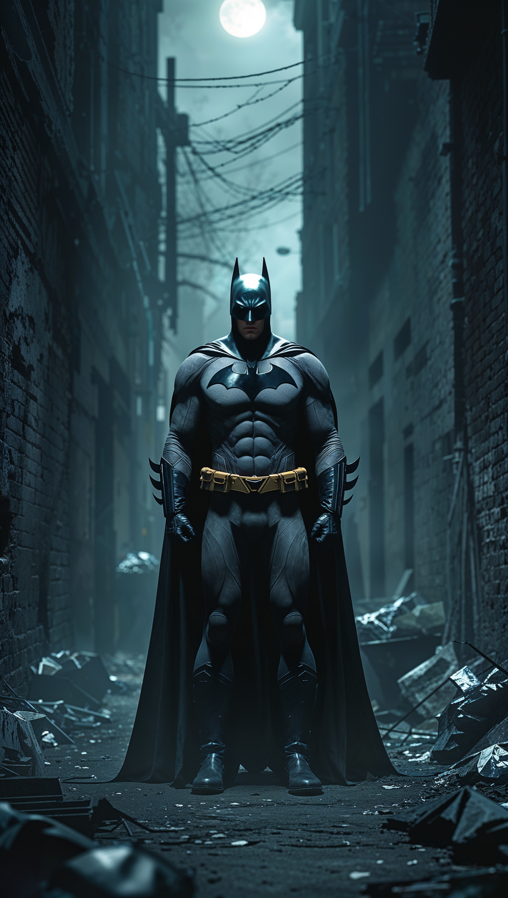 1664x2944 Cinematic shot of Batman in a dark alley, 4K iPhone wallpaper