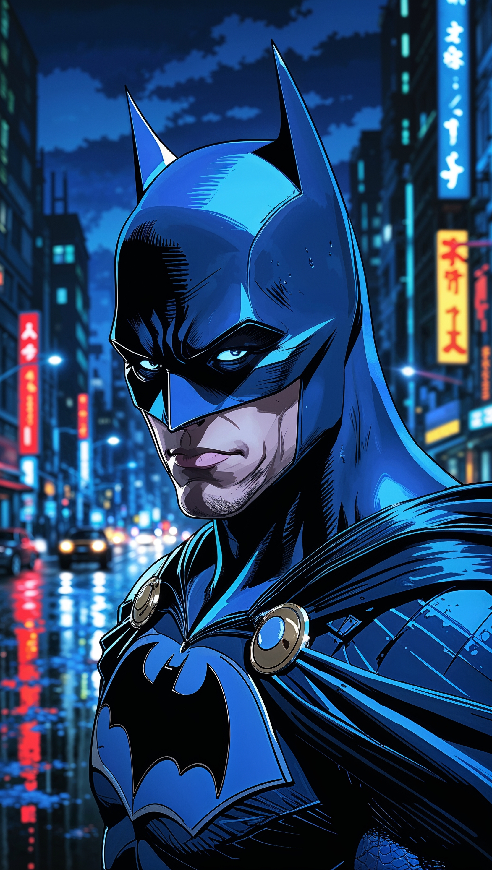 1664x2944 Artistic Batman in Japanese style illustration, 4K iPhone wallpaper