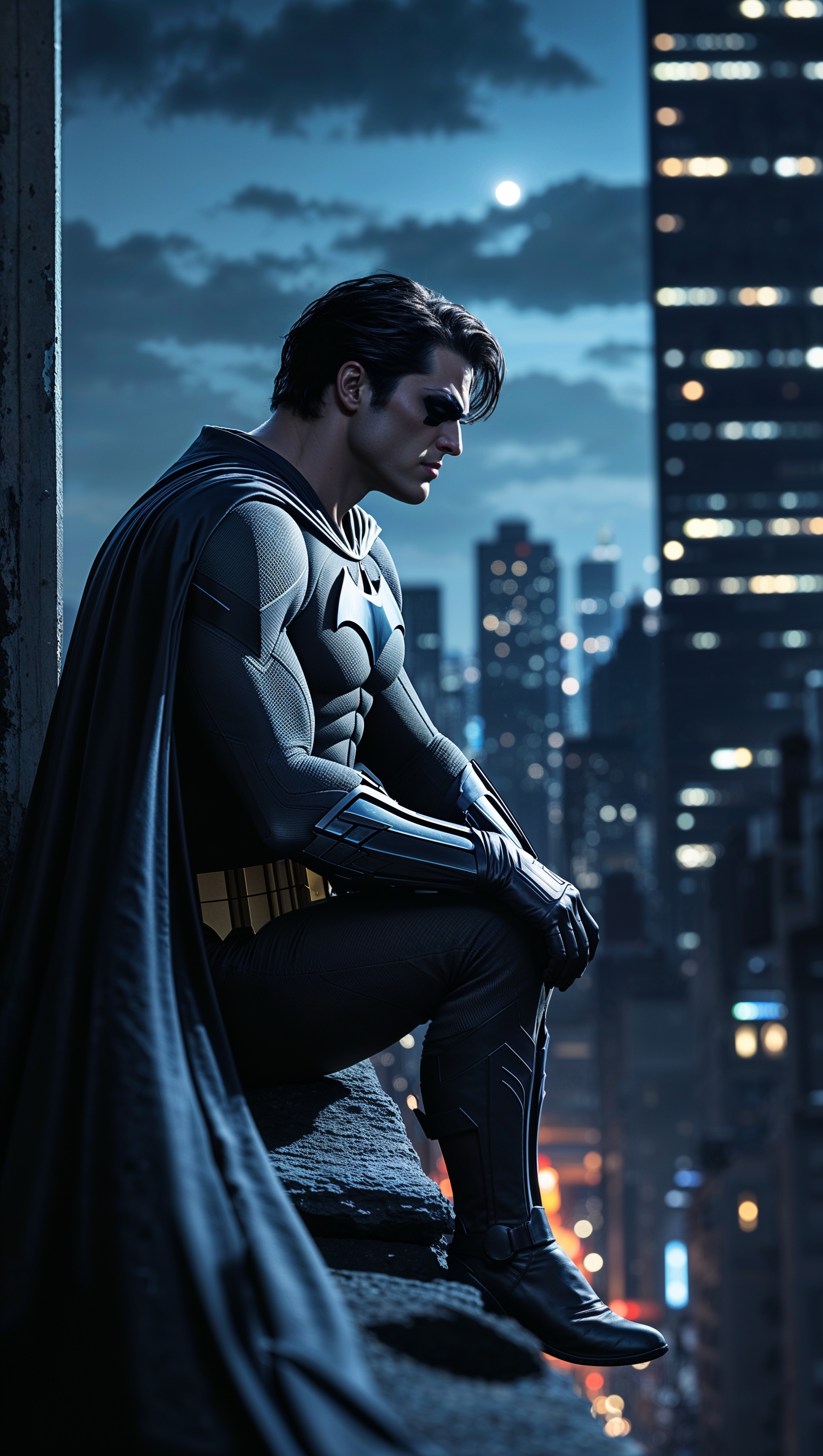 1664x2944 Batman calmly sitting on a building edge, 4K iPhone wallpaper