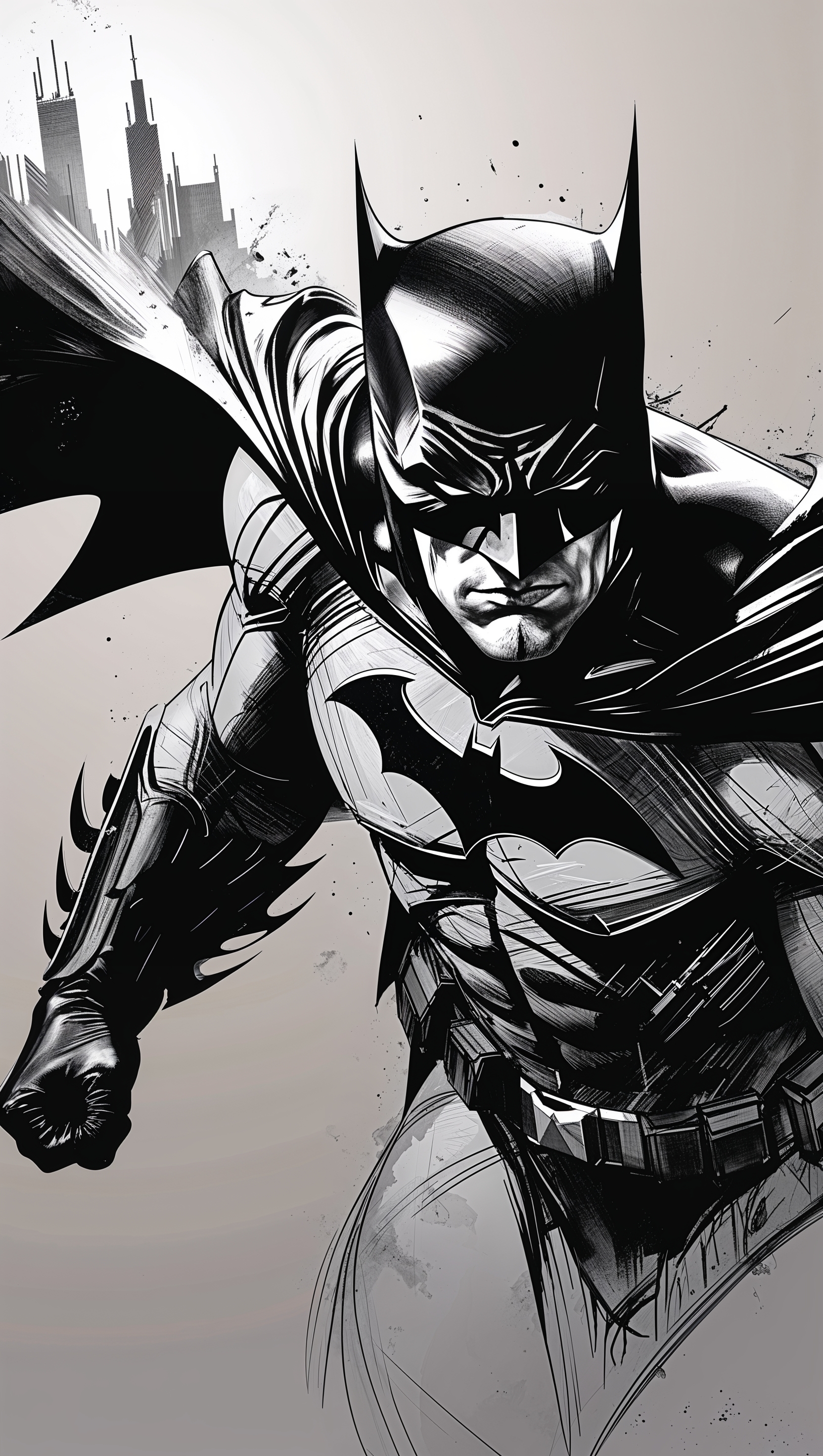 1664x2944 Artistic black and white sketch of Batman, 4K iPhone wallpaper