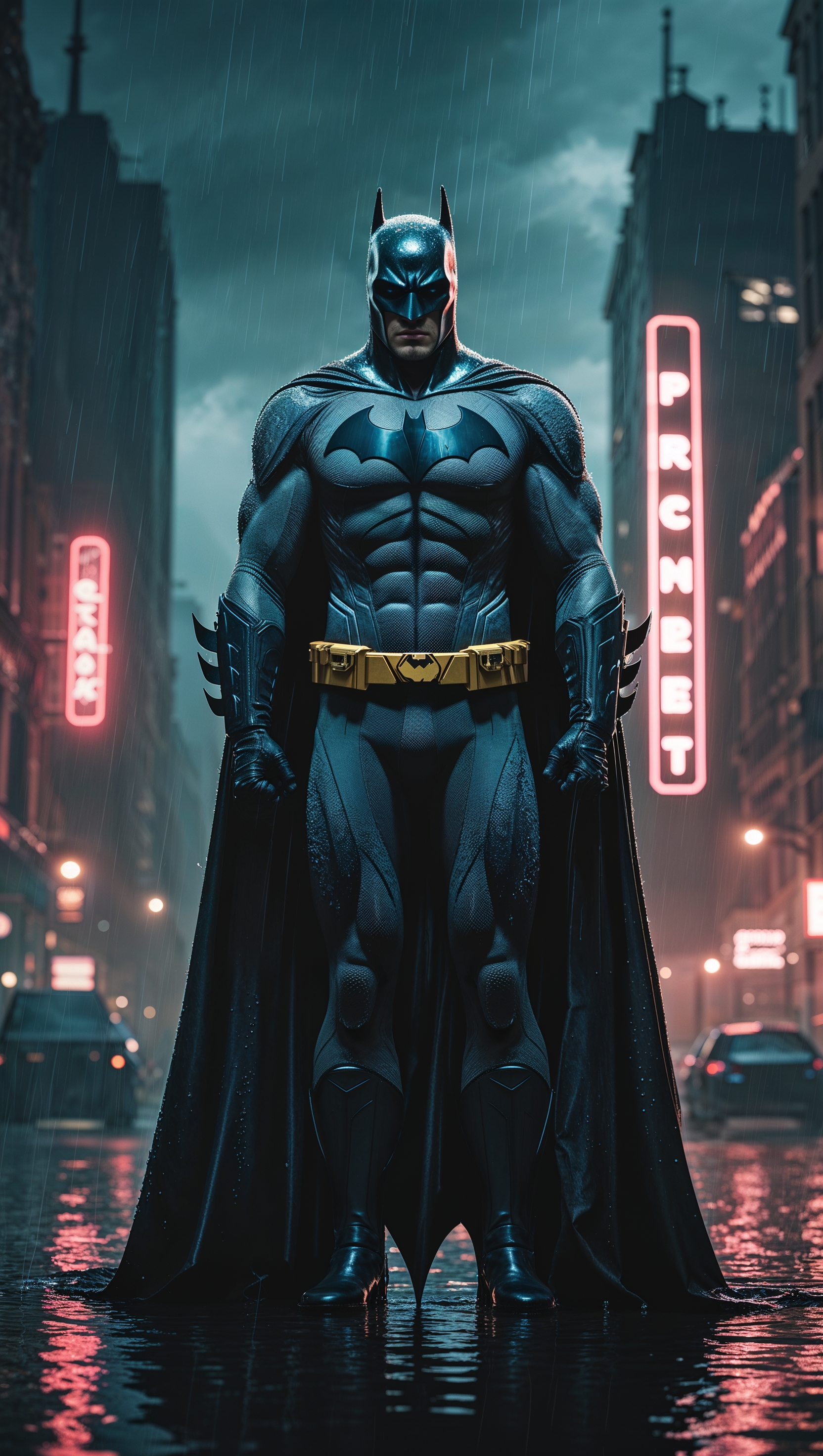1664x2944 Lone Batman in the night rain, cinematic style, 4K iPhone wallpaper