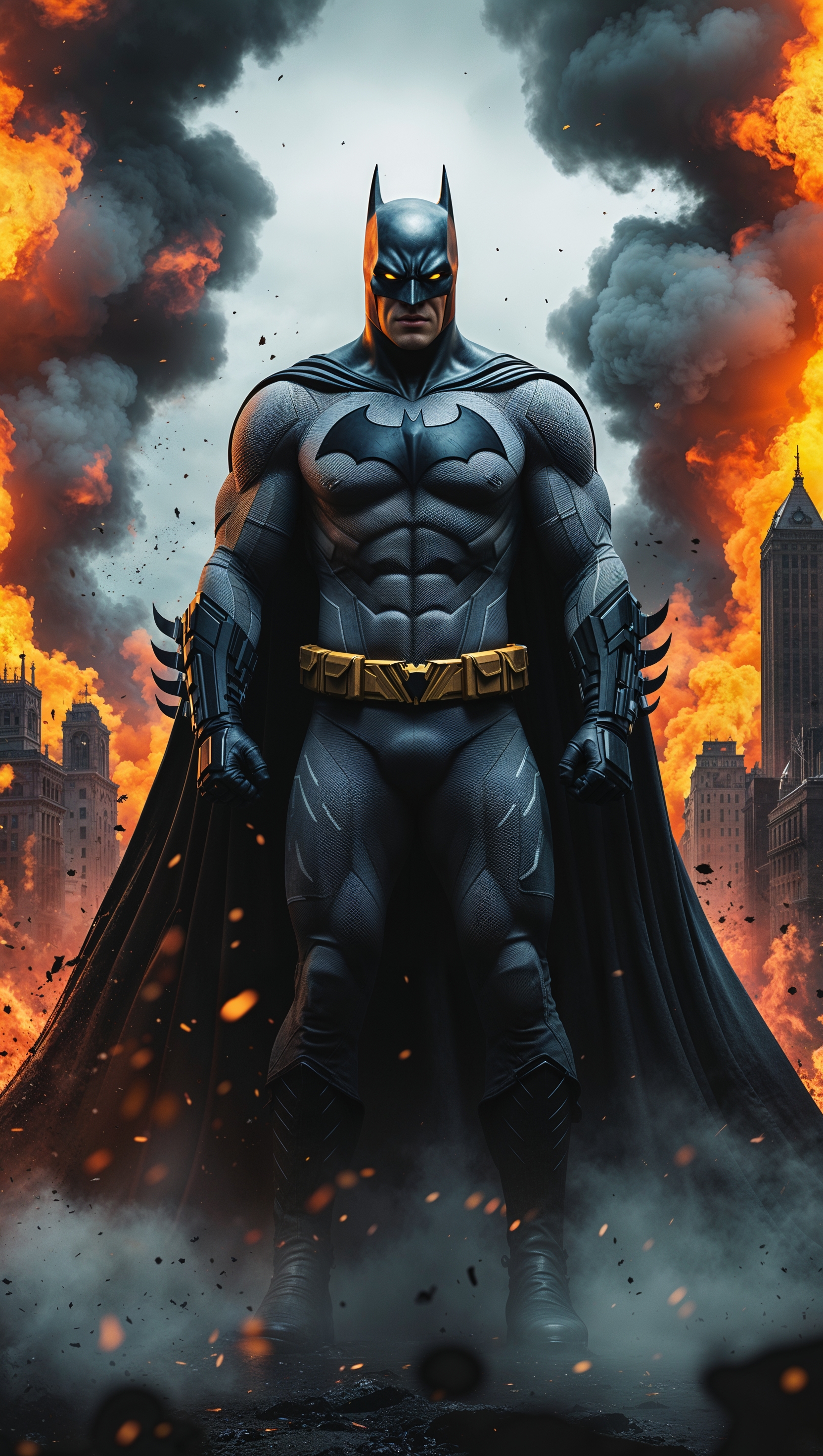 1664x2944 Batman with fire and smoke background, 4K iPhone wallpaper