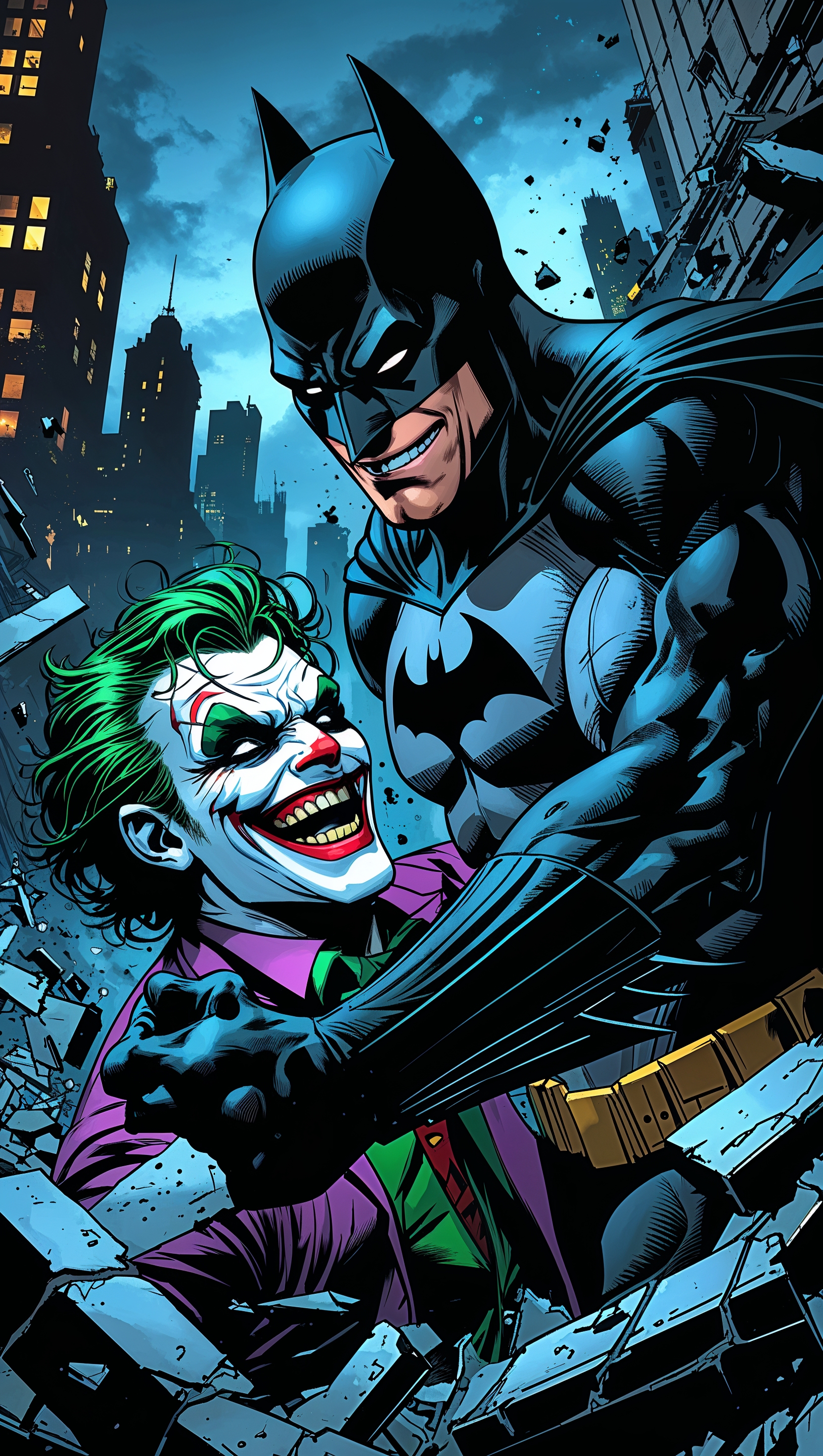 1664x2944 Batman fighting Joker, comic-style, 4K iPhone wallpaper