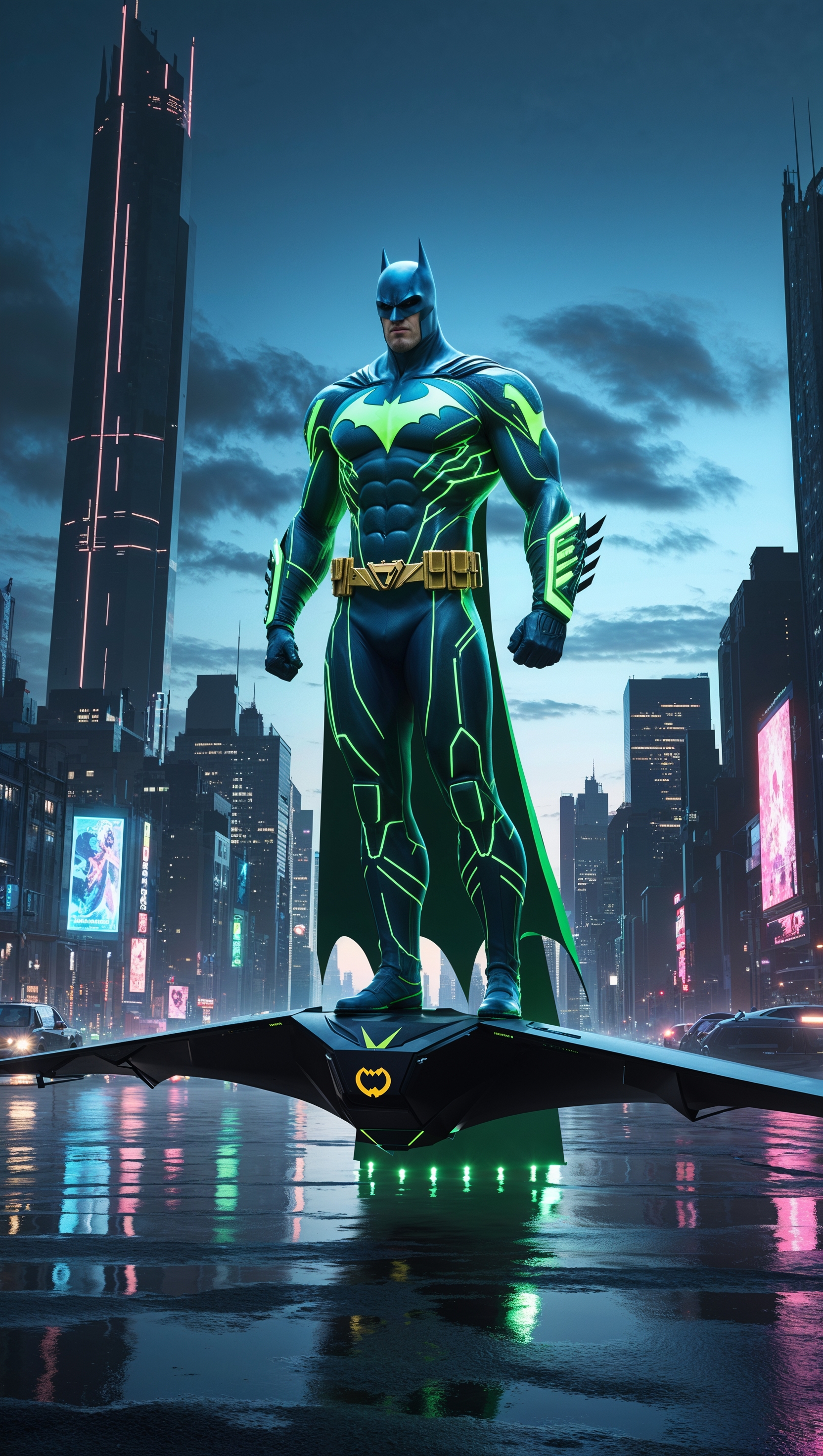 1664x2944 Neon Batman in a futuristic Gotham, 4K iPhone wallpaper