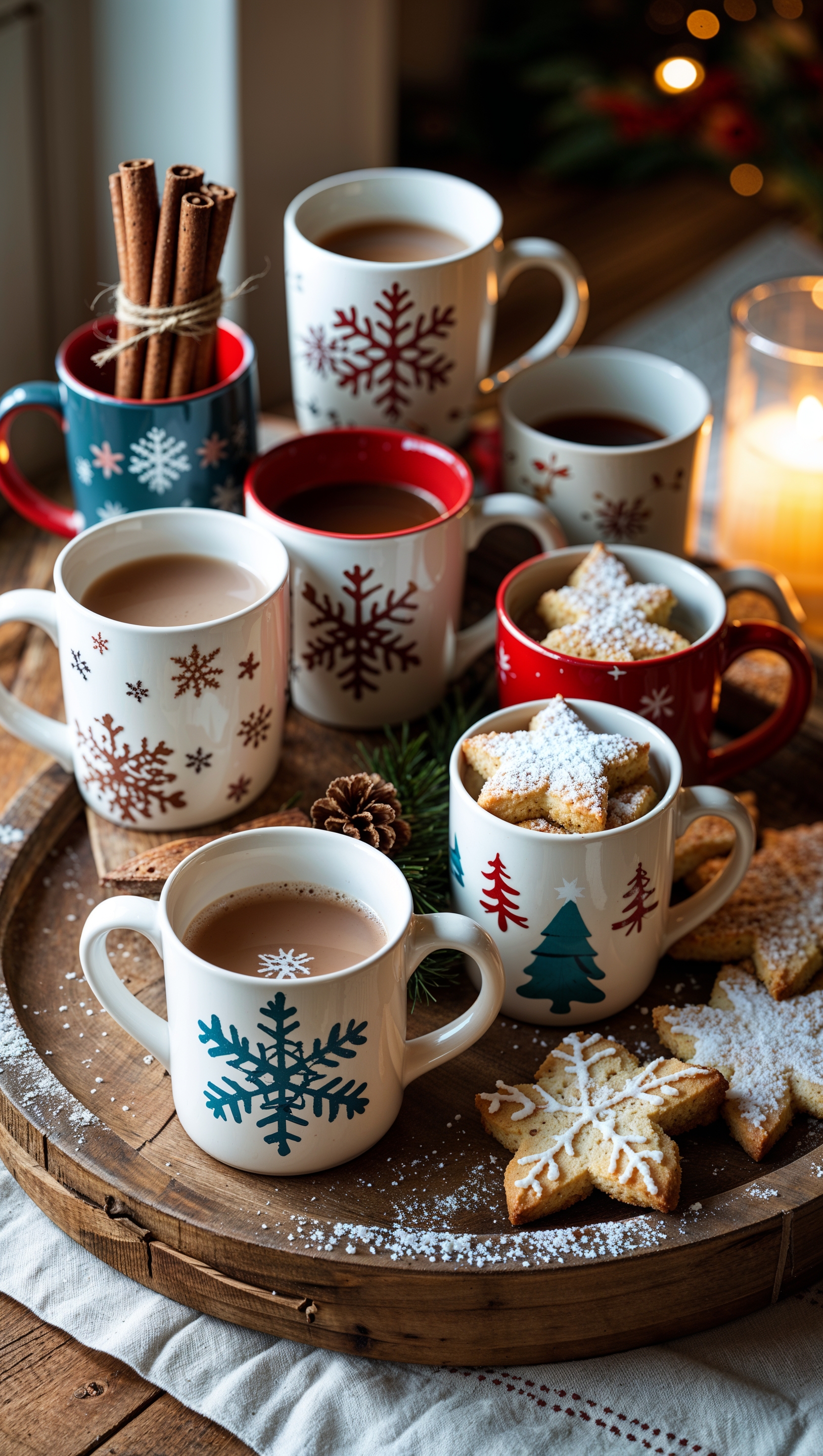 1664x2944 Winter-themed mugs, cinnamon sticks, and cookies on a tray