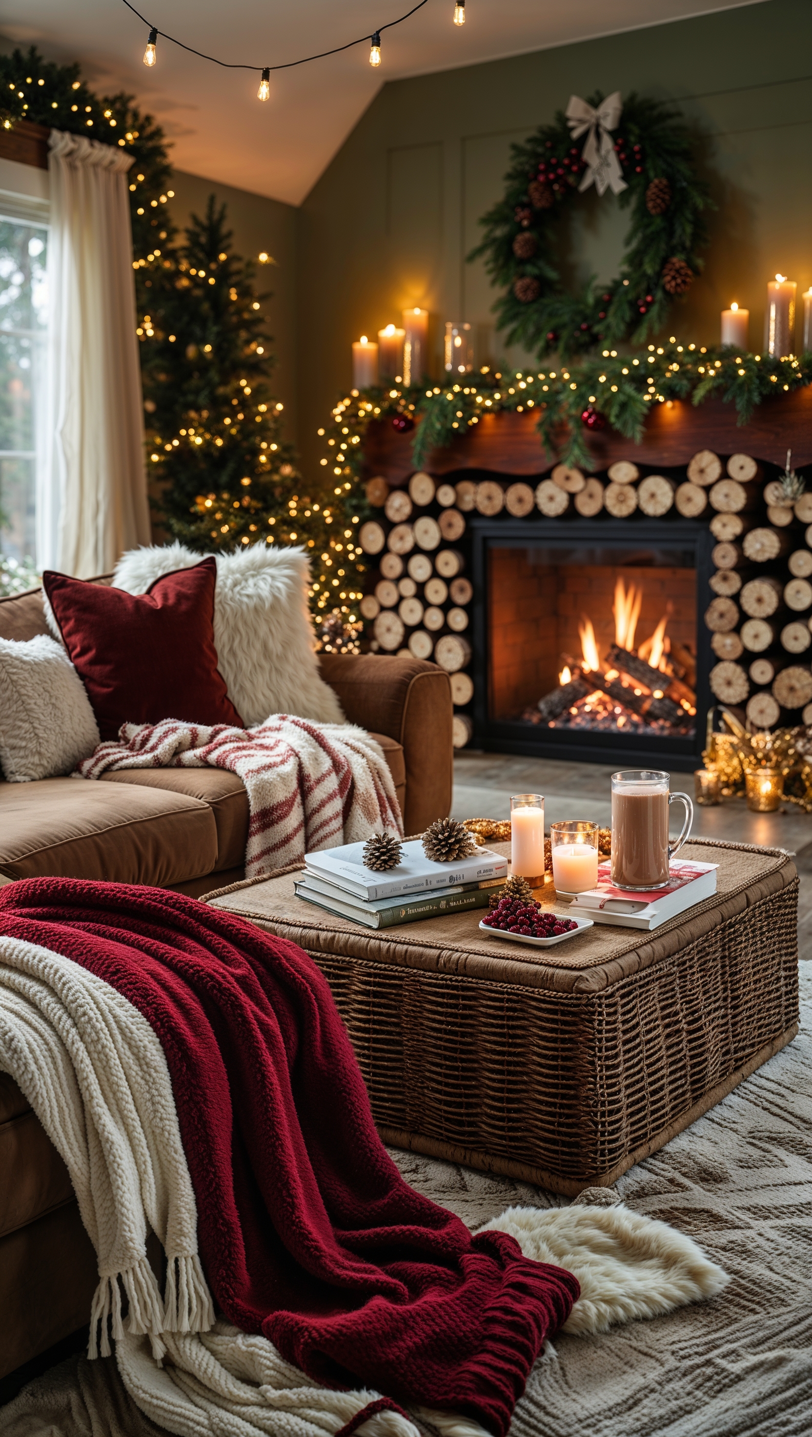 1664x2944 A cozy living room decorated for winter with blankets and lights
