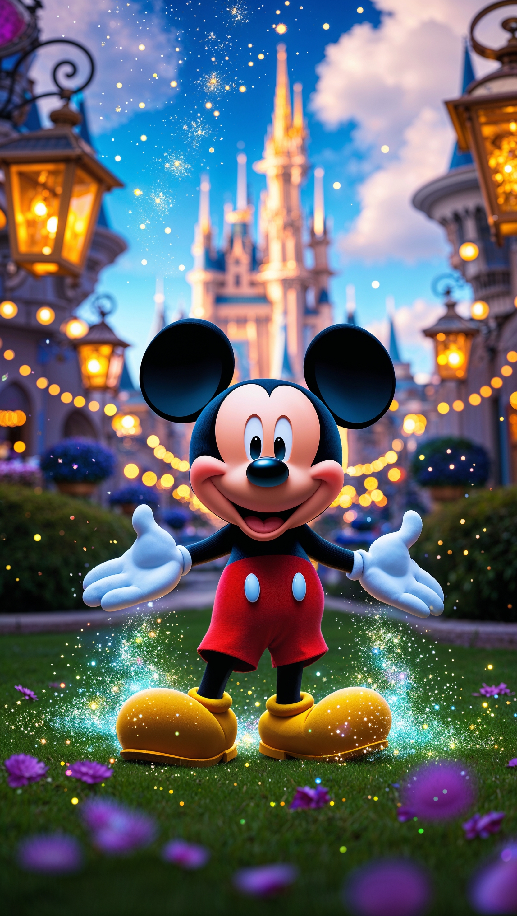 1664x2944 Mickey Mouse in a Disney world with magical lighting
