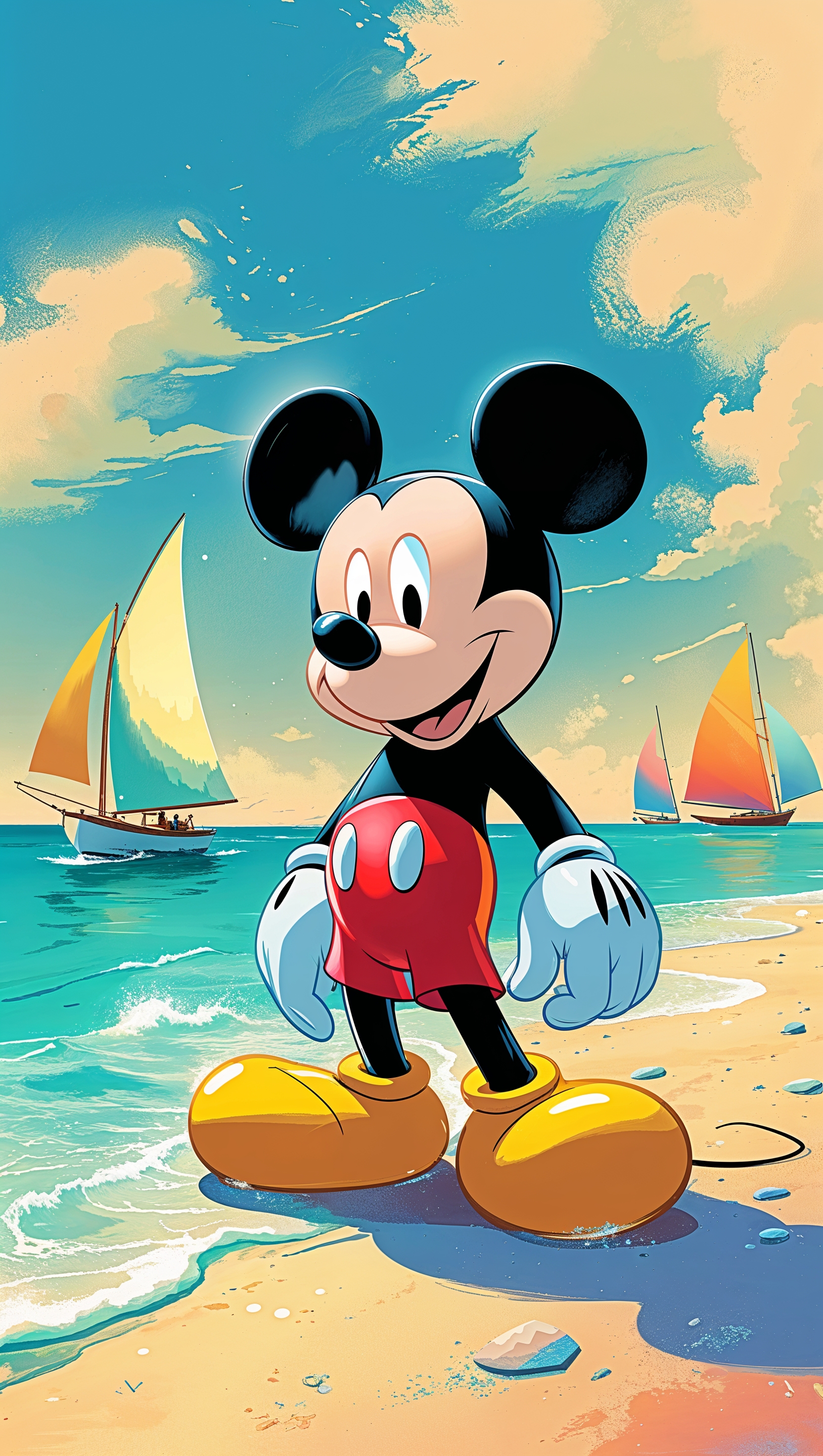 1664x2944 Mickey Mouse by the sea, cartoon style