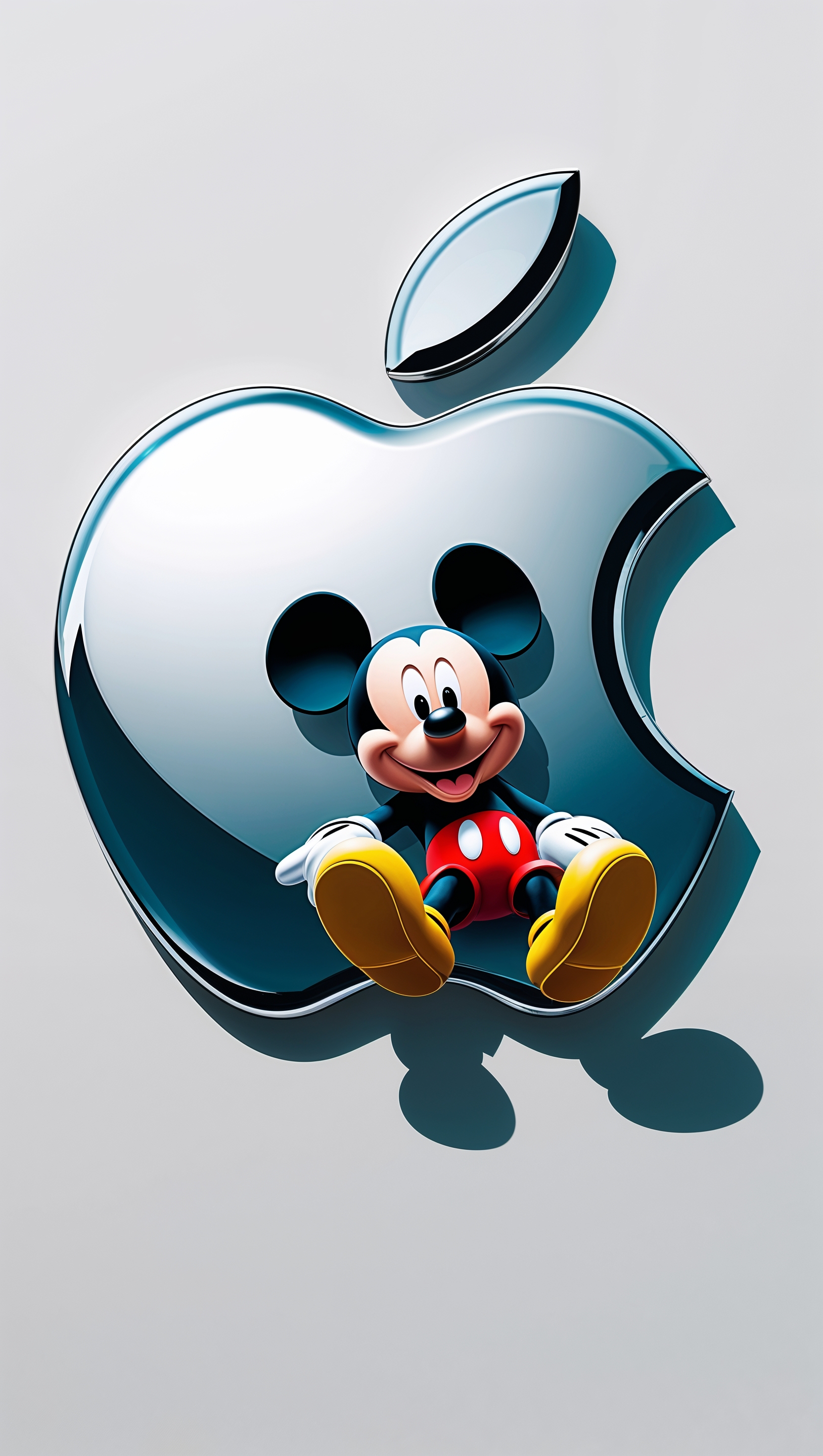 1664x2944 Mickey Mouse sitting on the Apple logo, minimalist design for iPhone wallpaper