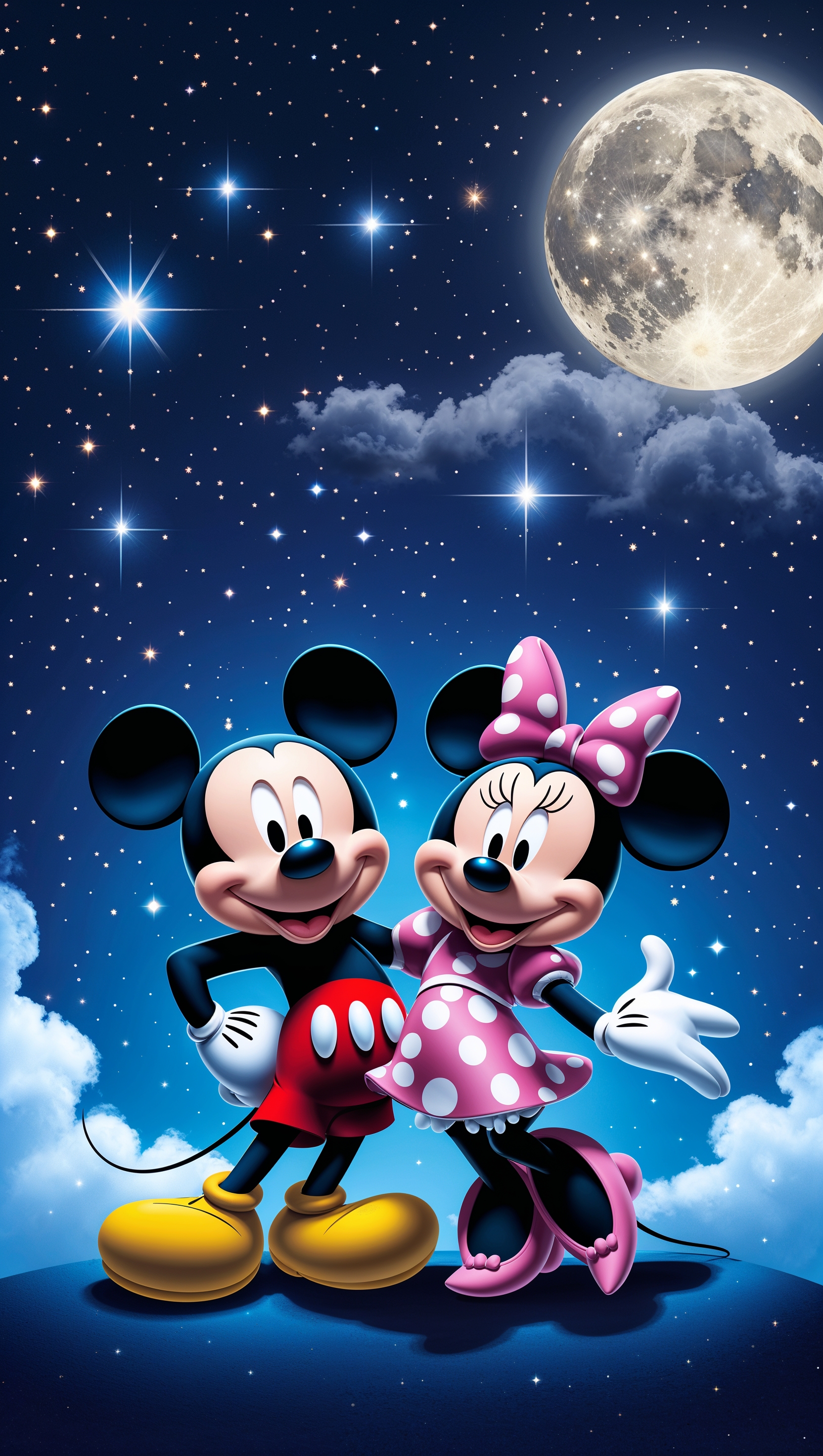 1664x2944 Mickey Mouse with Minnie Mouse under a starry night sky