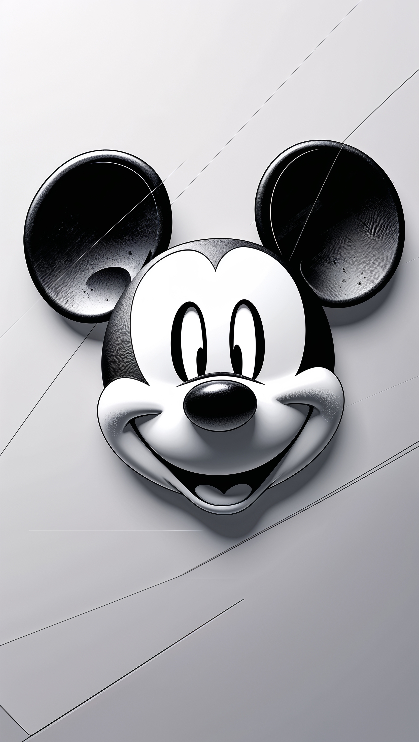 1664x2944 Simple black and white design of Mickey Mouse, minimalist style
