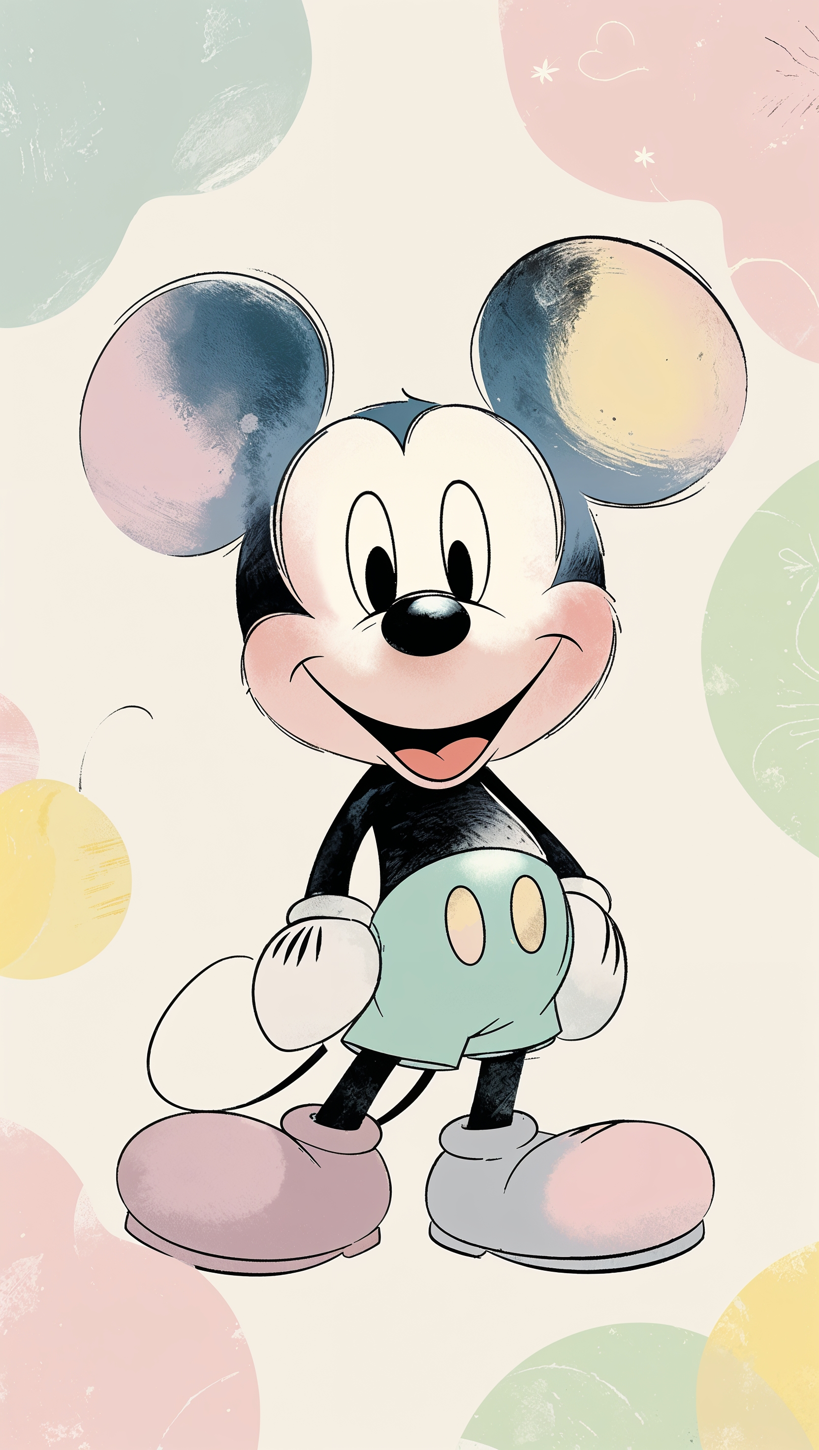 1664x2944 Mickey Mouse in pastel colors, child-friendly design