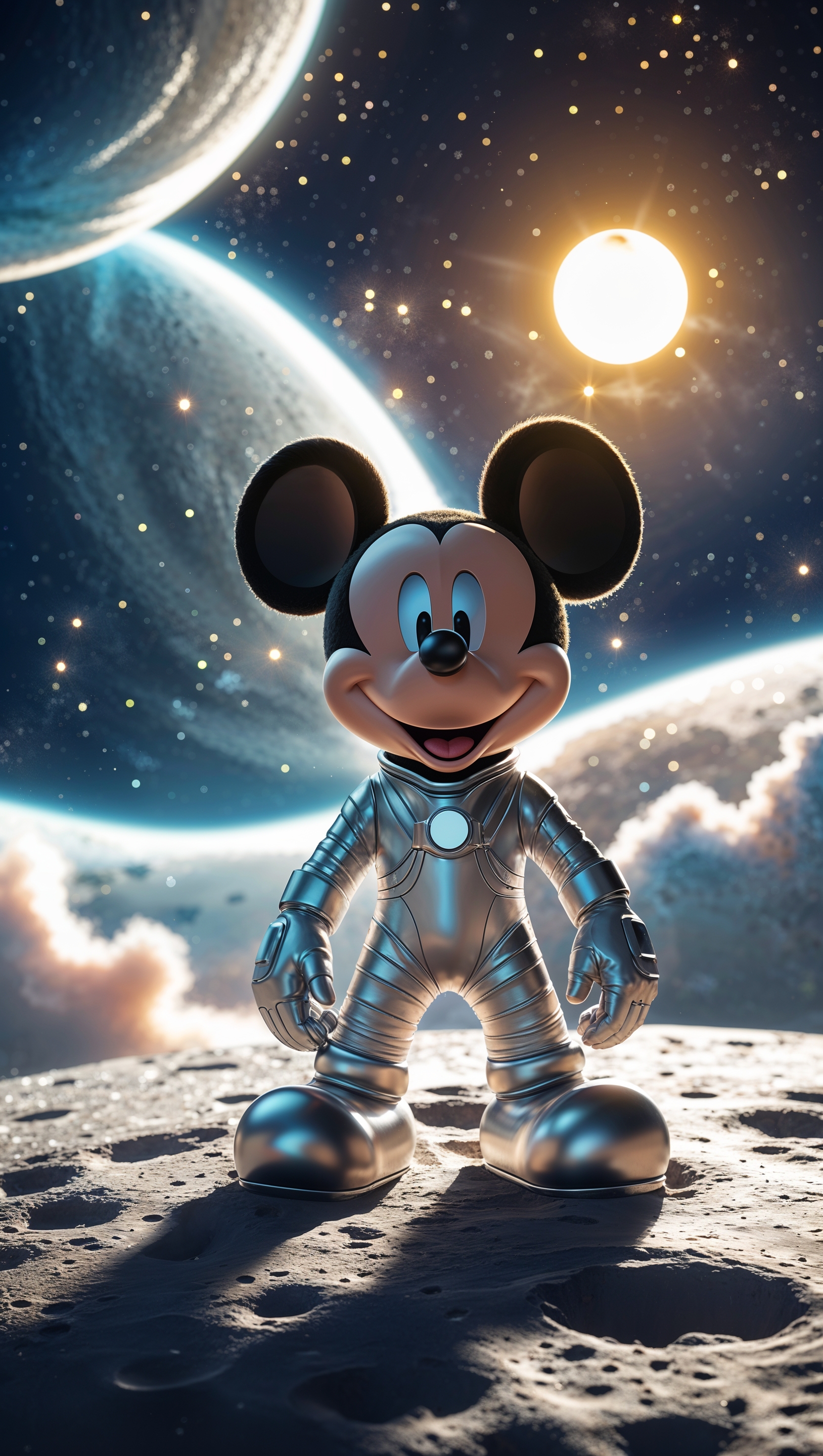 1664x2944 Mickey Mouse on the moon, beautiful space background