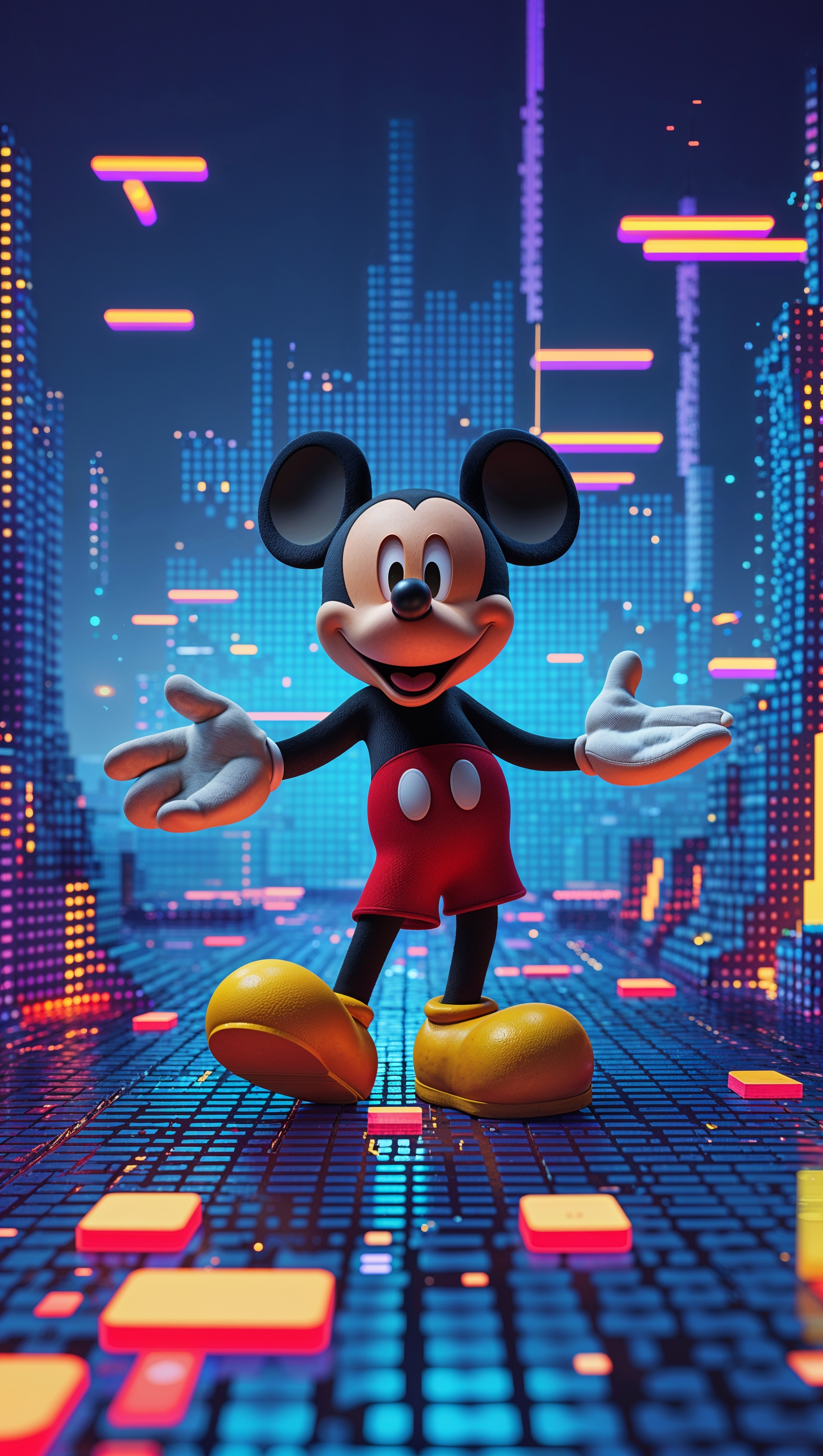 1664x2944 Mickey Mouse in a pixelated digital world