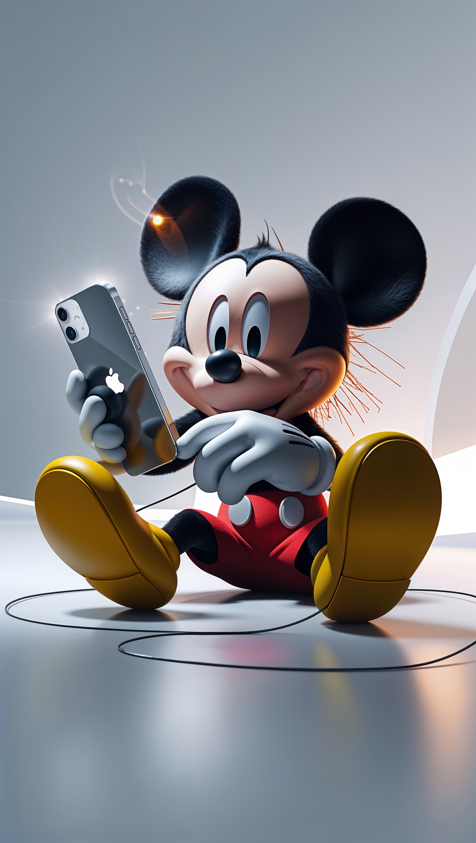 1664x2944 Mickey Mouse playing with an iPhone, modern design