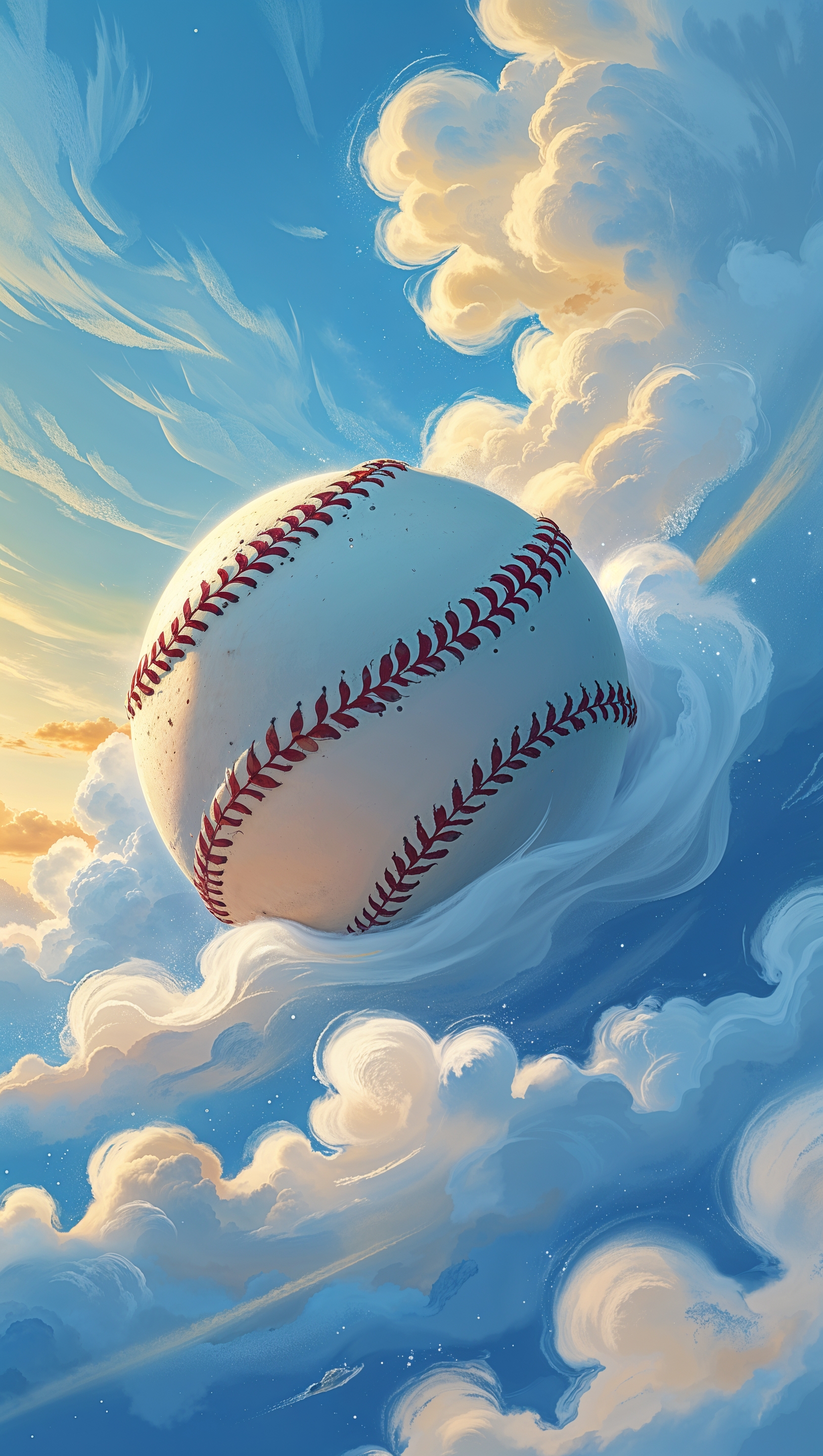 1664x2944 Softball flying through clouds, fantasy style, dreamy, iPhone wallpaper
