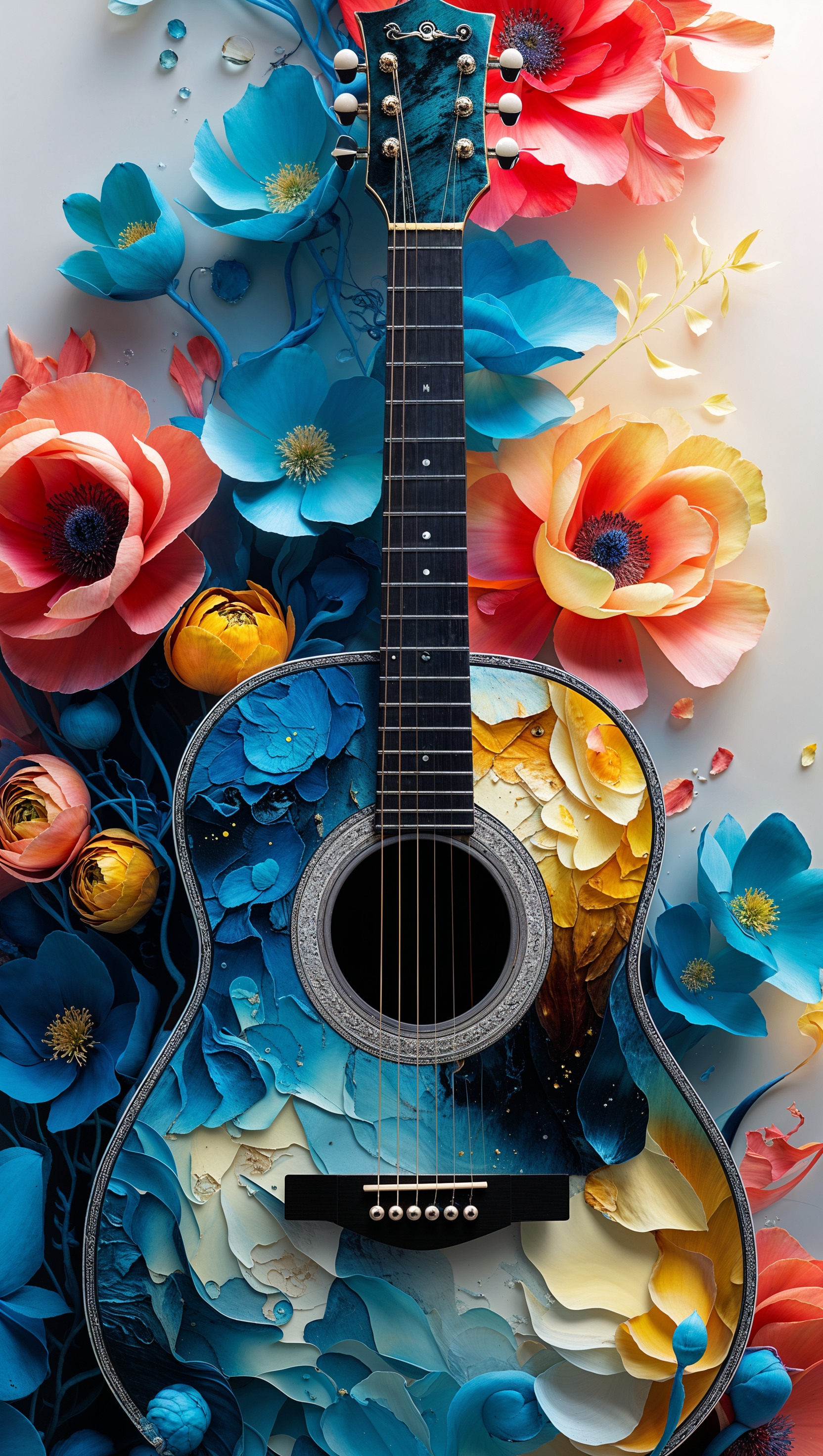 1664x2944 Guitar and colorful flowers, artistic iPhone background