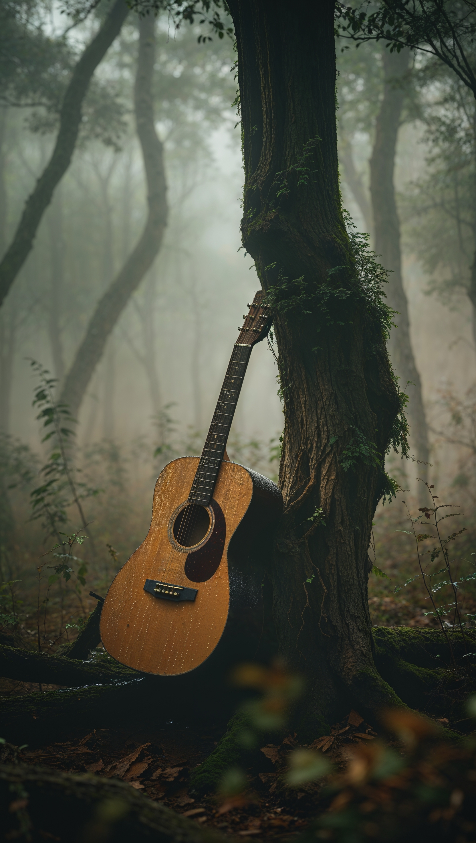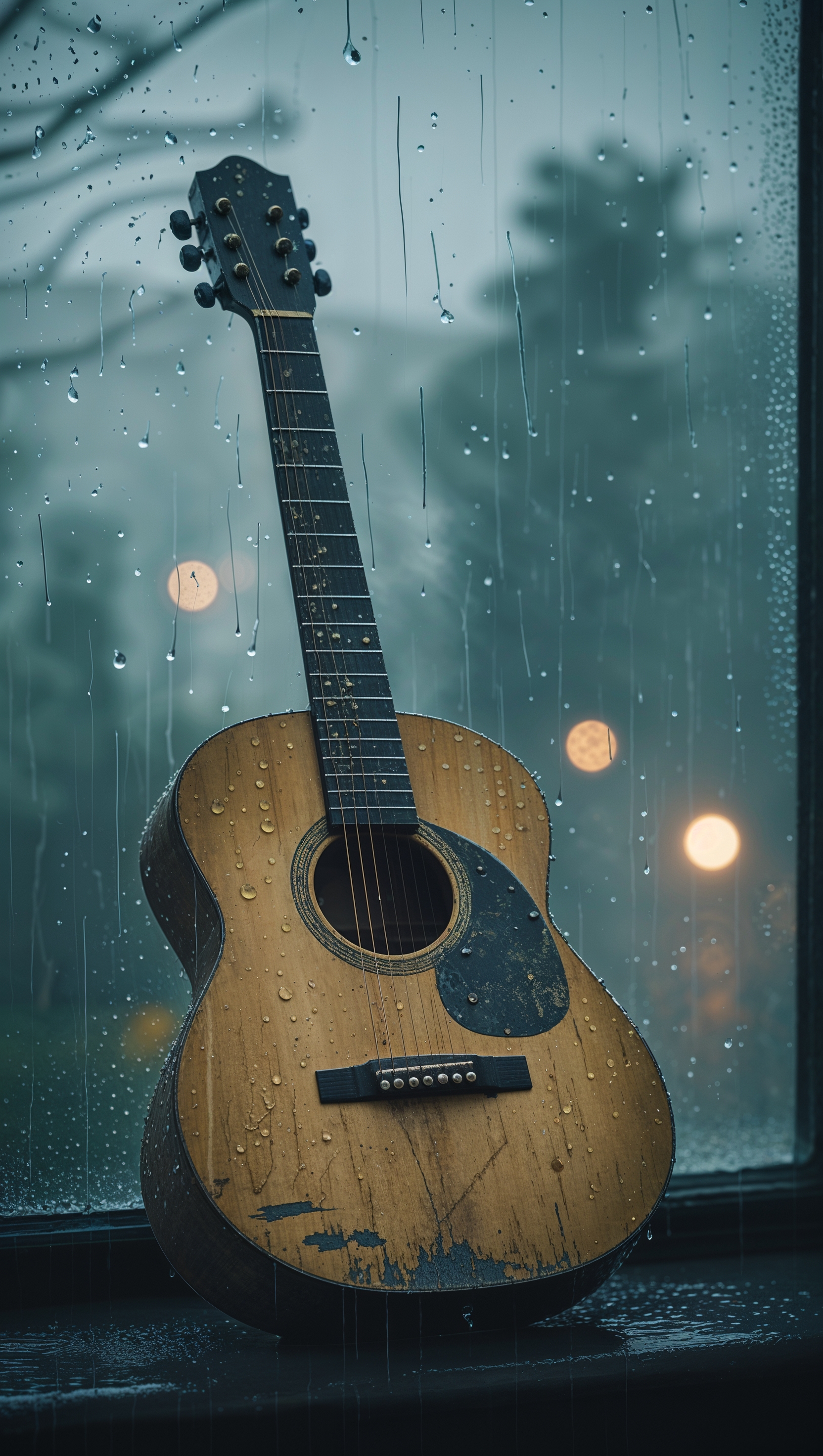 1664x2944 Guitar beside a rainy window, emotional iPhone wallpaper
