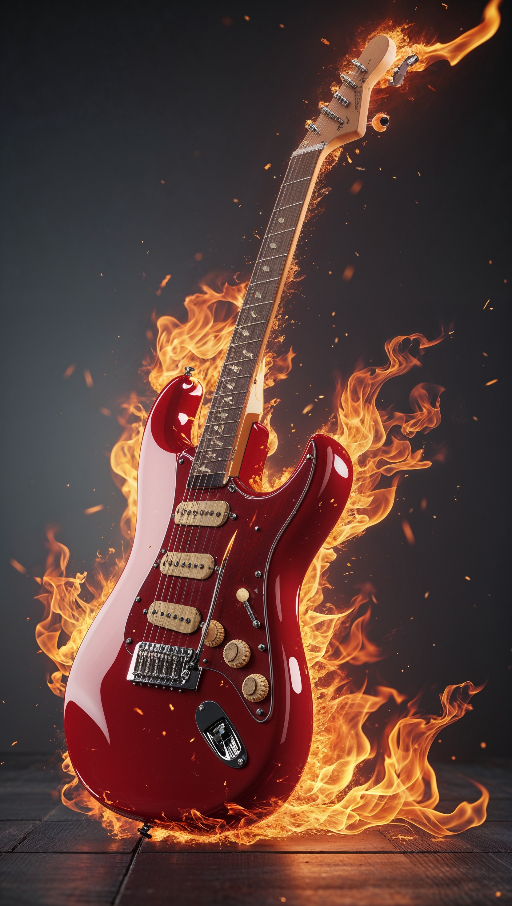 1664x2944 Electric guitar with fire flames effect, iPhone background