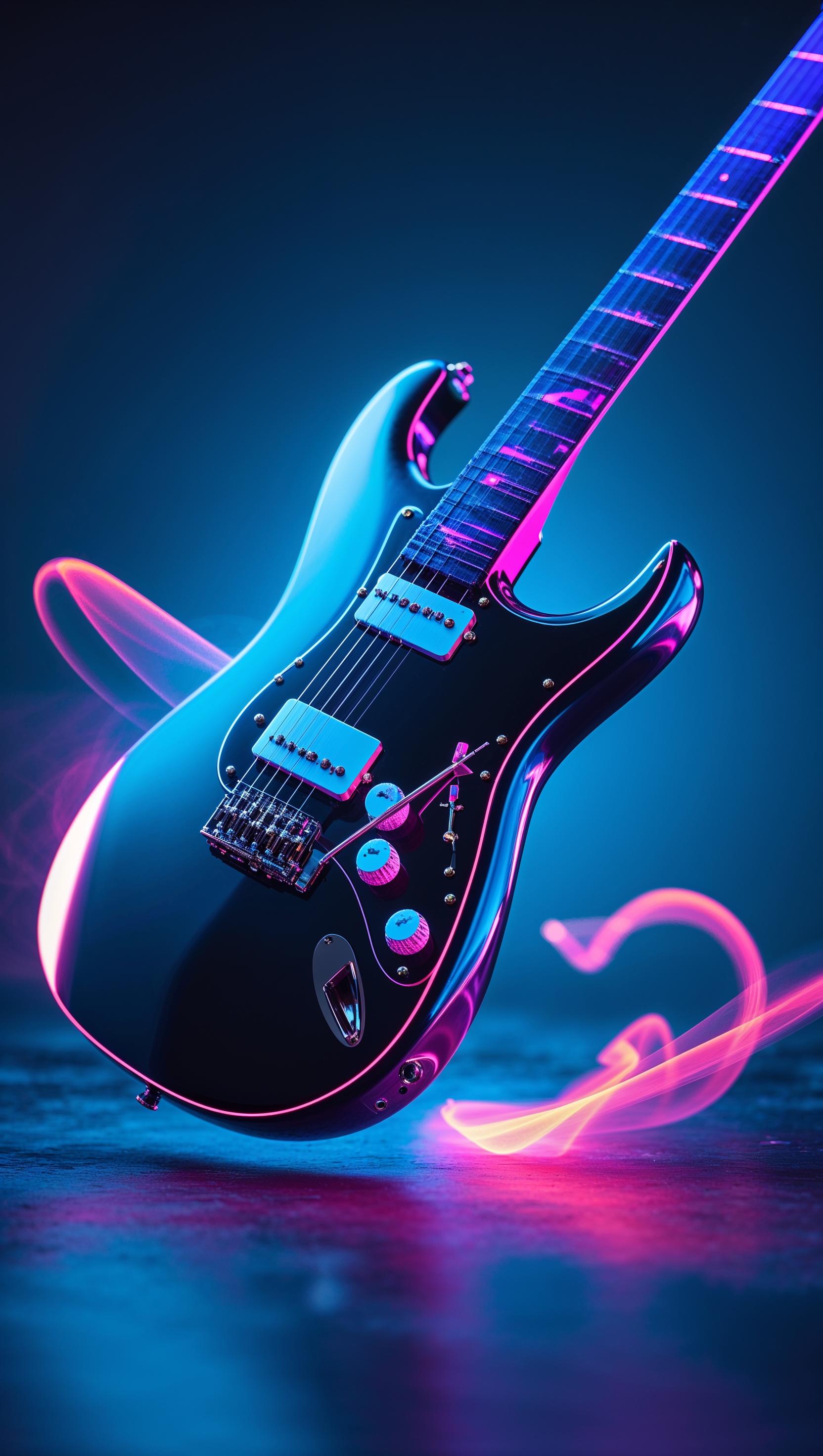 1664x2944 Neon-colored electric guitar scene, perfect for iPhone background