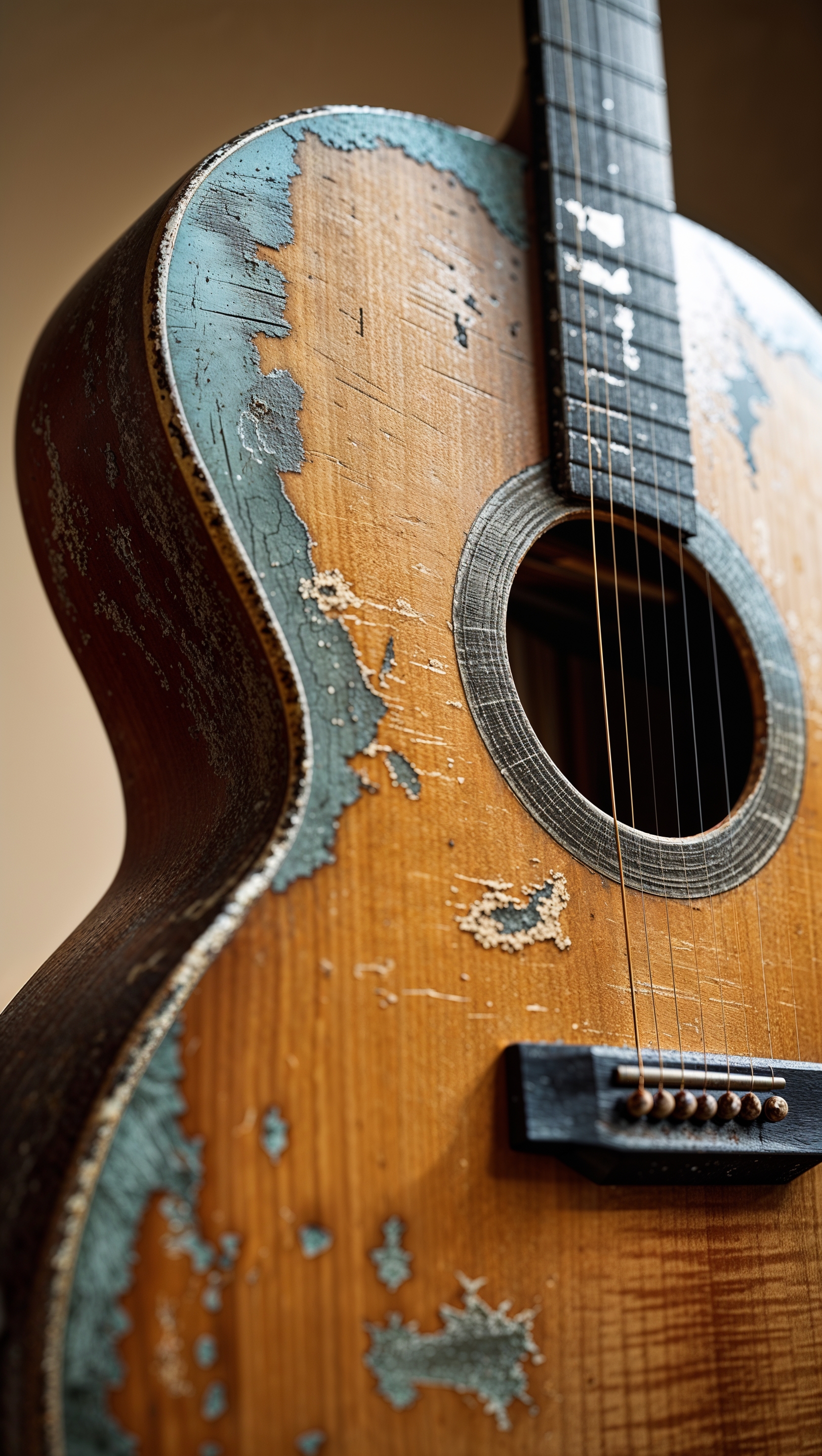 1664x2944 Close-up of a vintage worn guitar, iPhone wallpaper