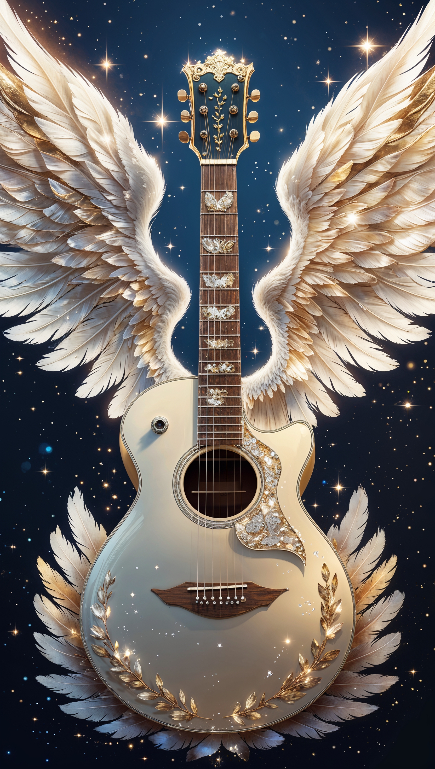 1664x2944 Fantasy guitar with angel wings, iPhone background
