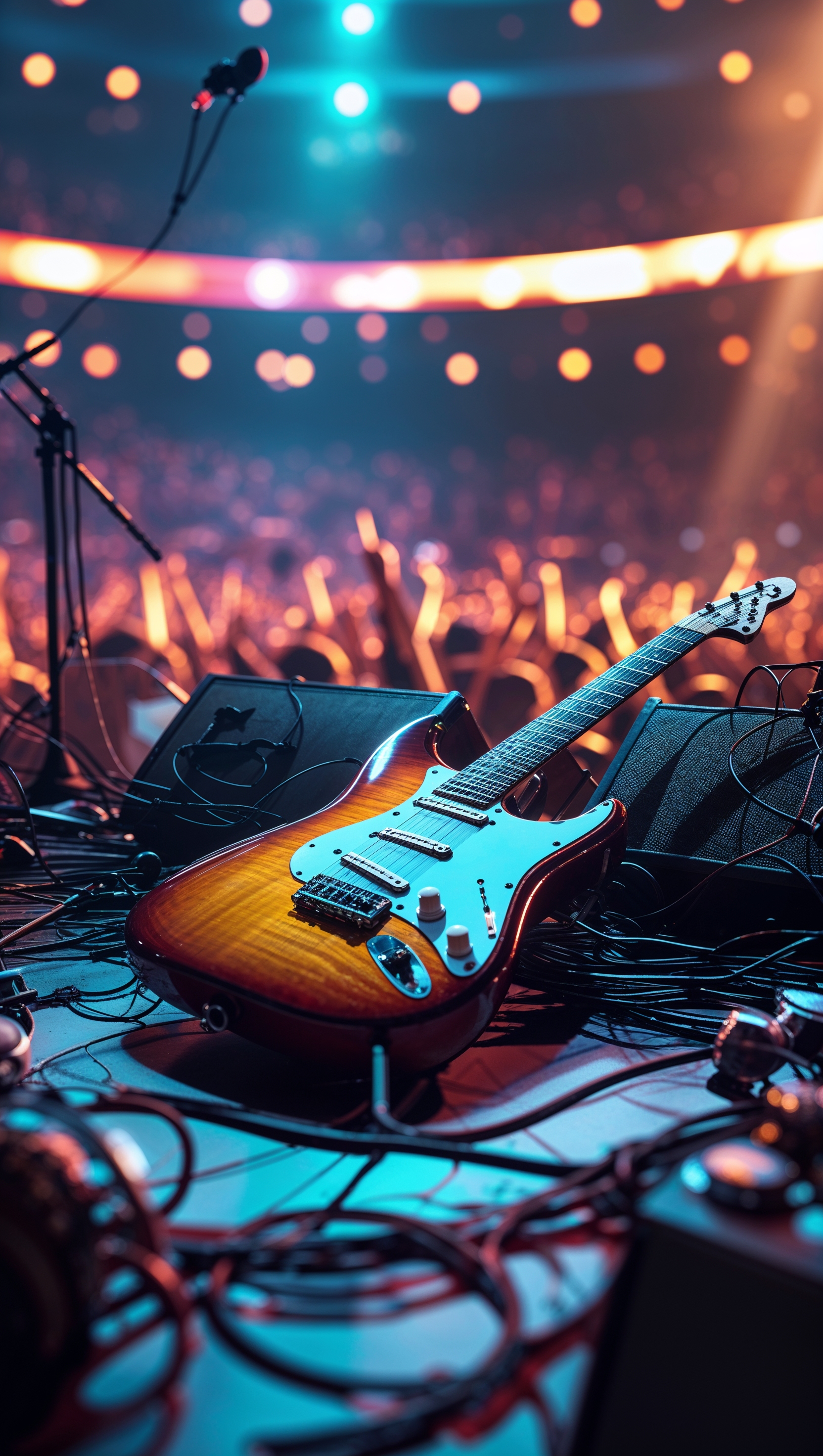 1664x2944 Guitar on a crowded concert stage, exciting iPhone wallpaper