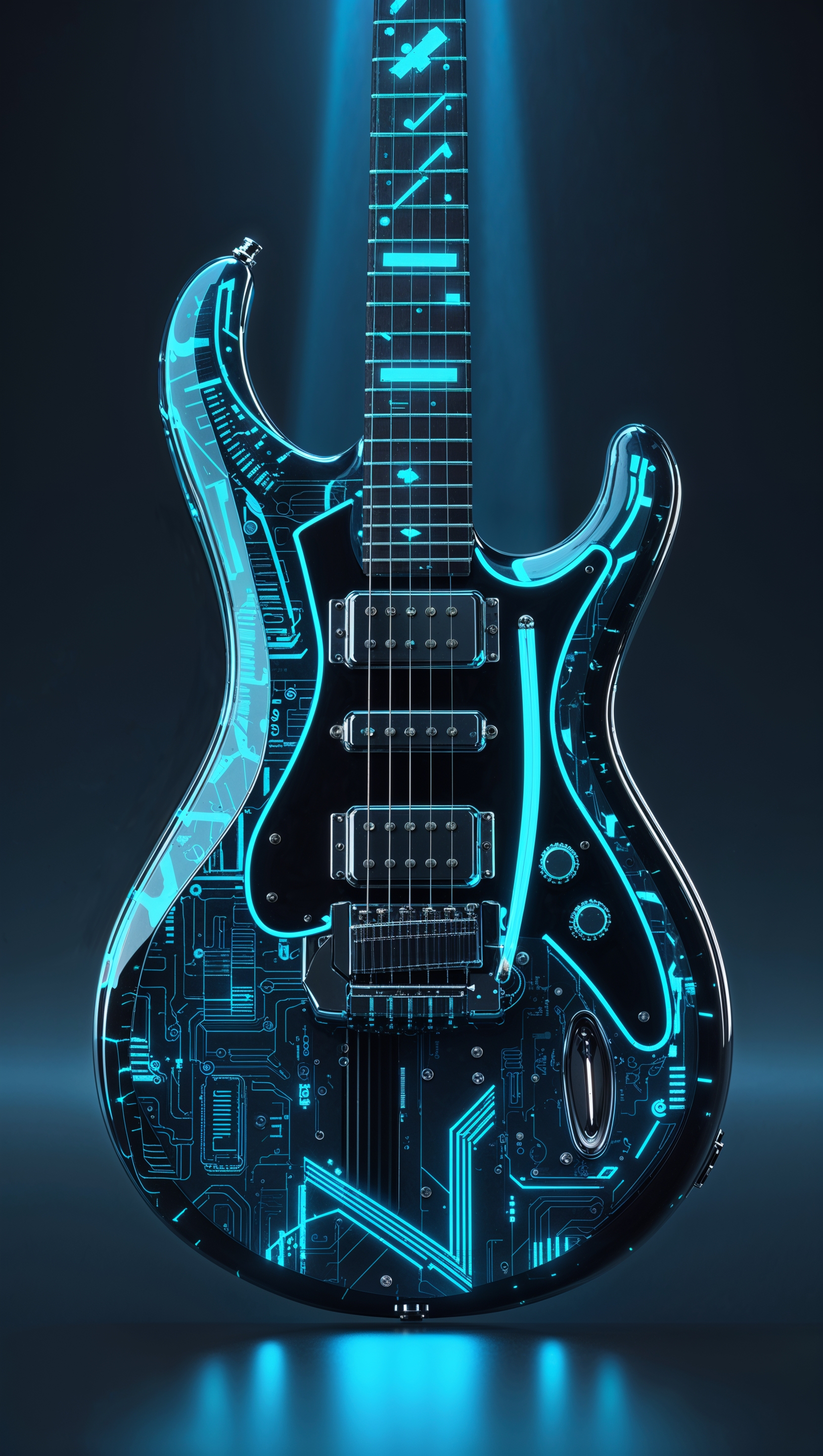 1664x2944 Futuristic cyber electric guitar design, iPhone background