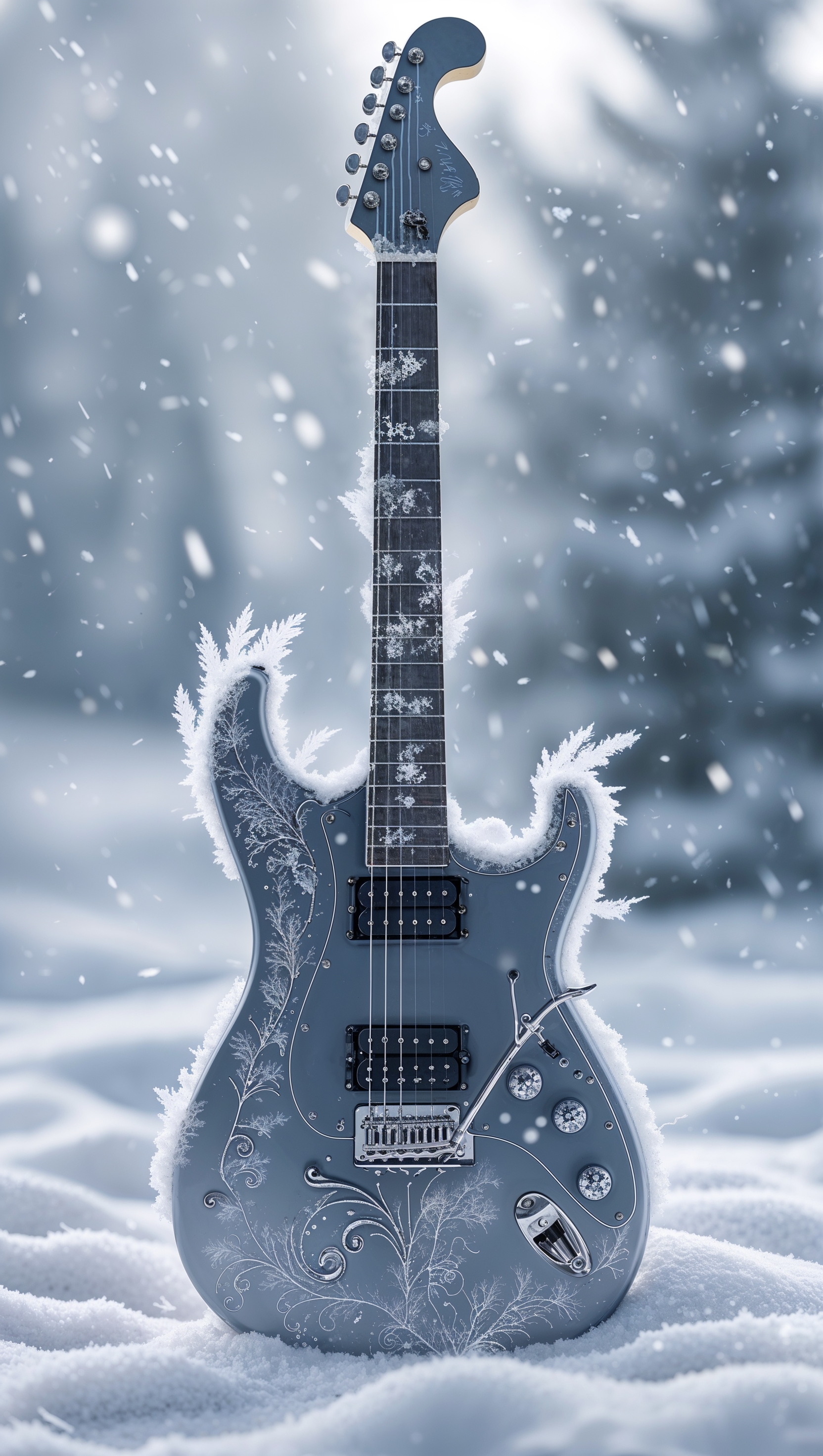 1664x2944 Guitar with icy and snowy effect, winter iPhone background
