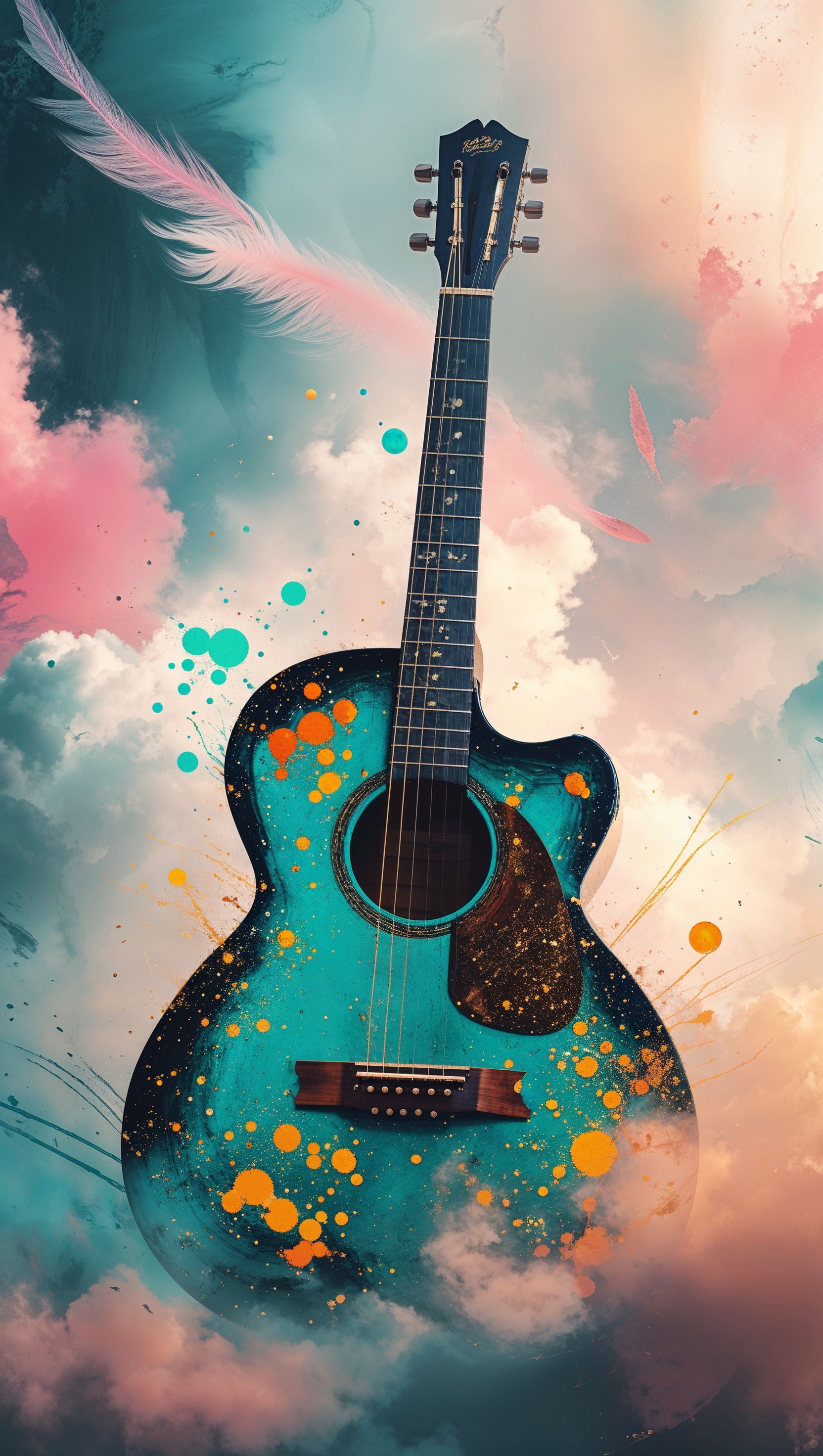 1664x2944 Guitar with watercolor paint splashes, artistic iPhone background