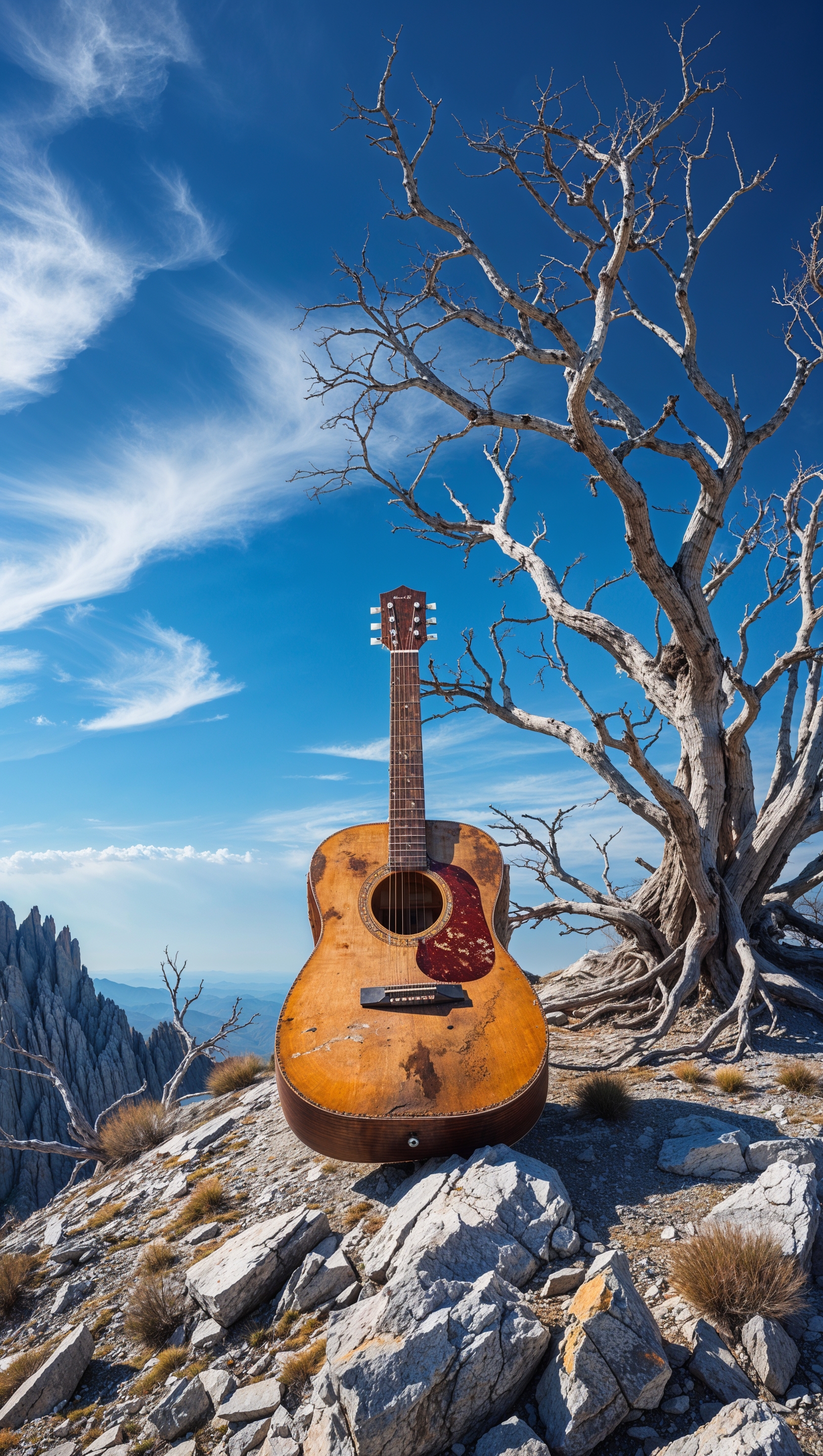 1664x2944 Guitar on a rocky mountain top, adventurous iPhone background