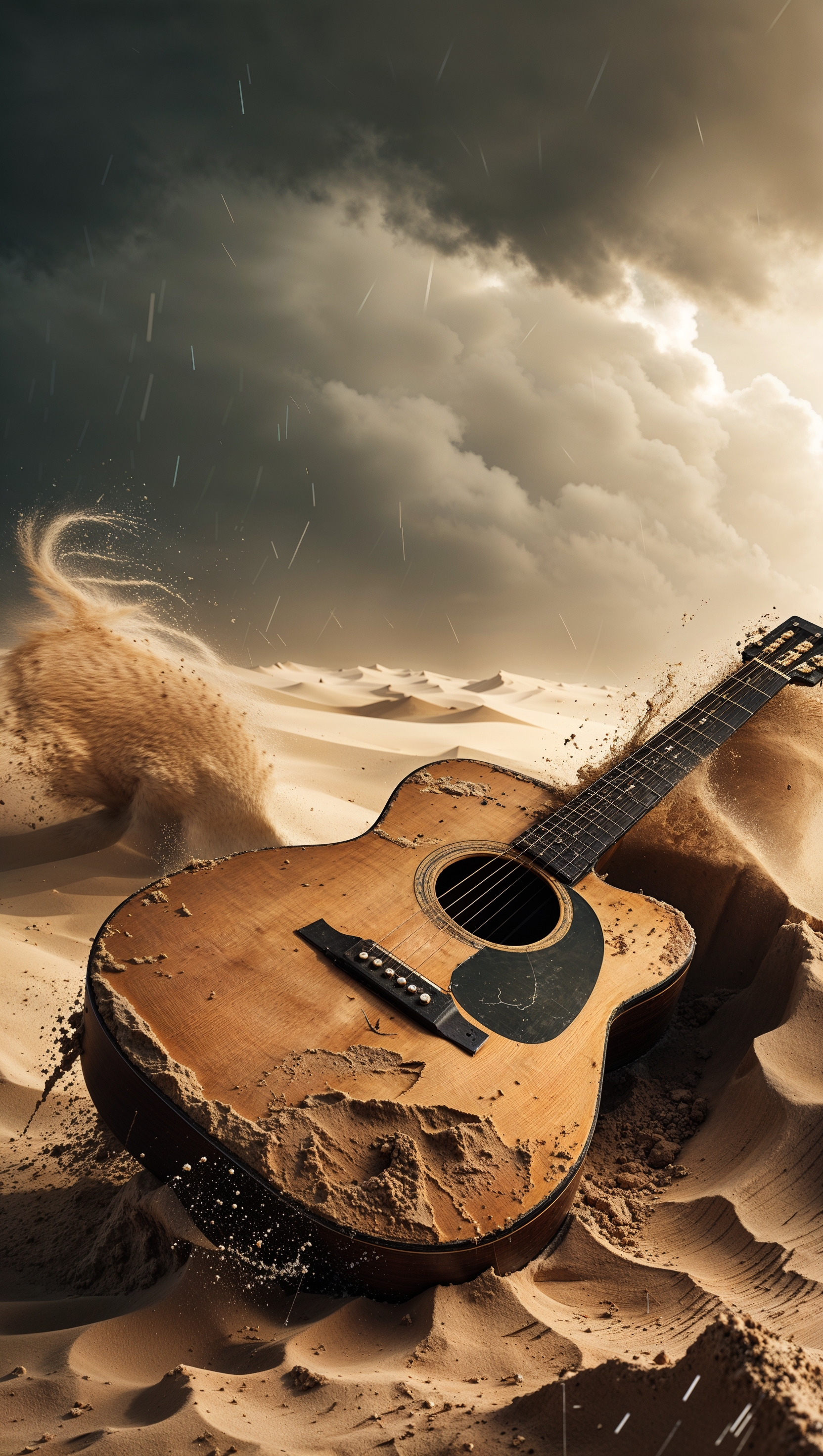 1664x2944 Guitar in a sandstorm, dramatic scene for iPhone background