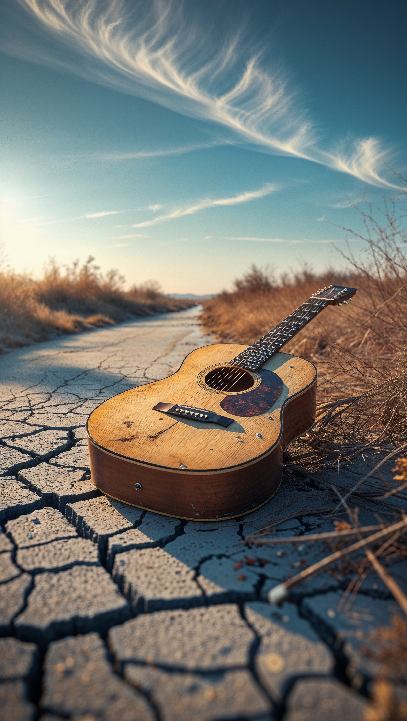 1664x2944 Guitar on an abandoned road, iPhone wallpaper