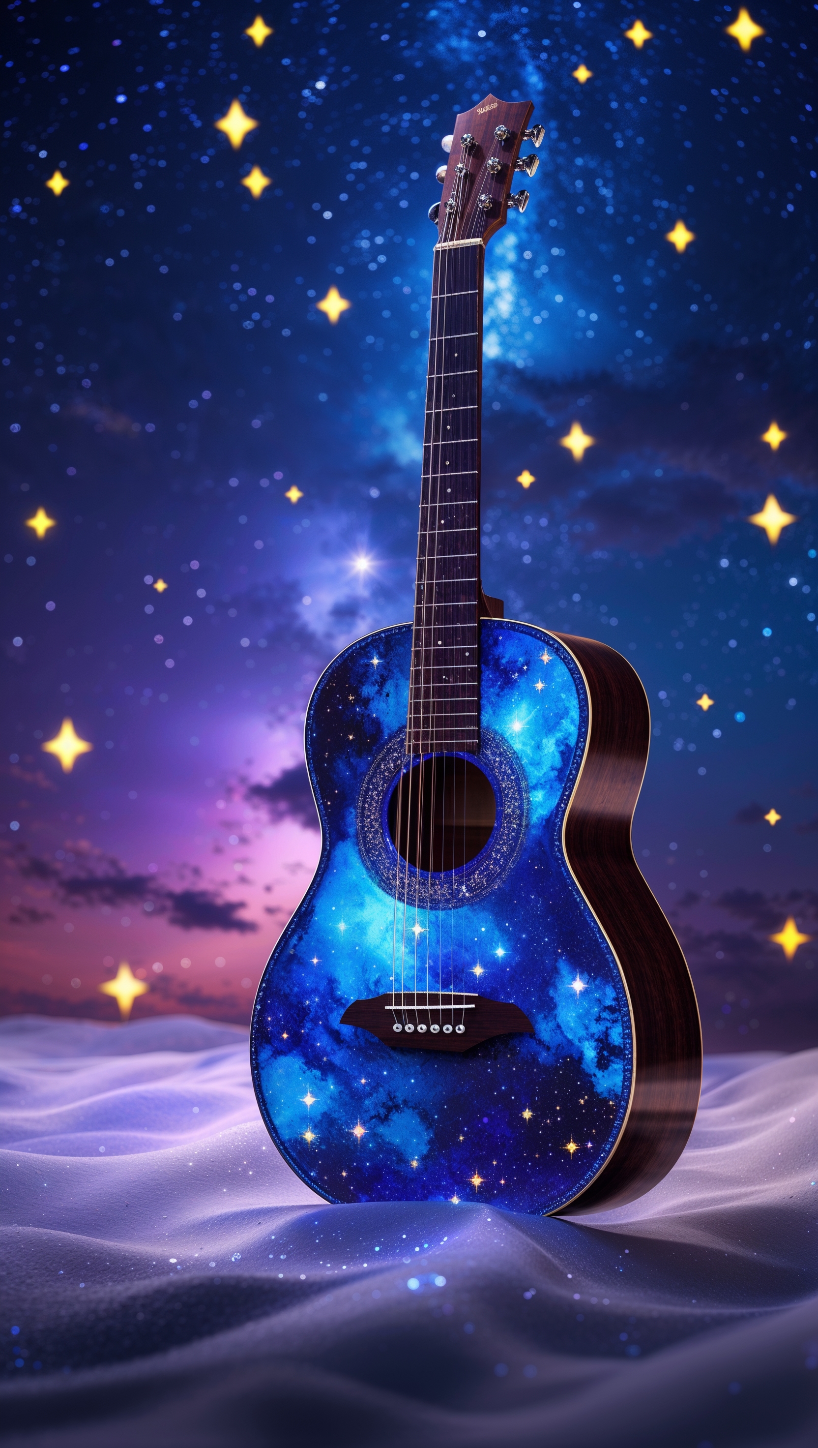 1664x2944 Guitar with galaxy patterns on the body, fantasy iPhone background