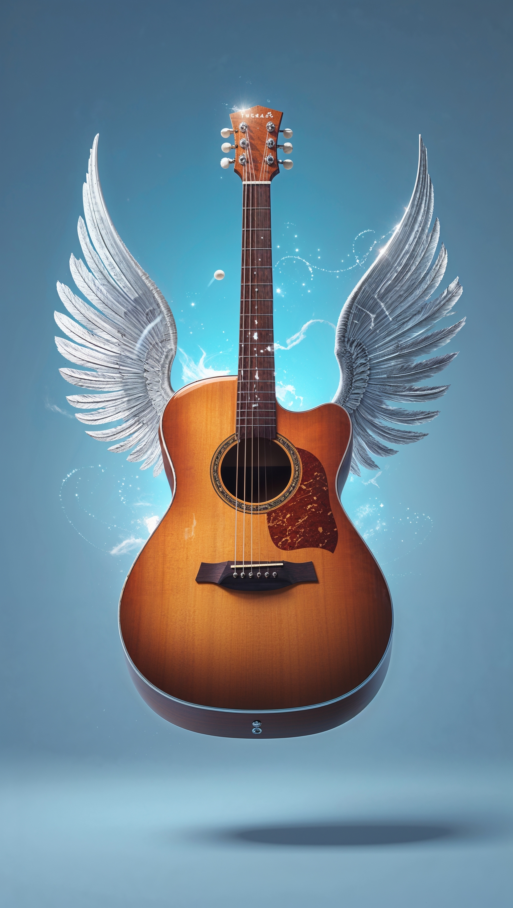 1664x2944 Floating guitar in the sky with silver wings, iPhone wallpaper