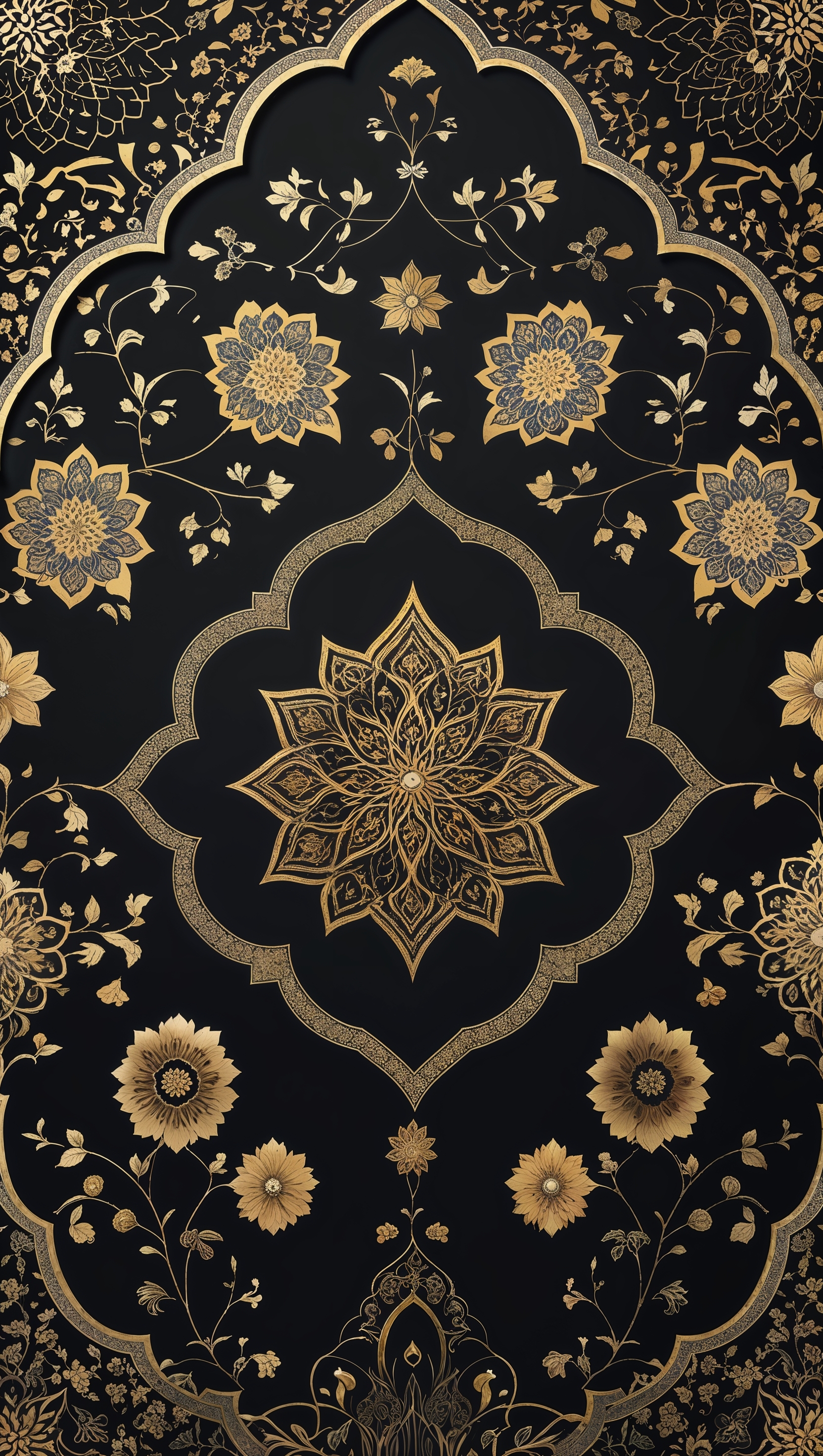 1664x2944 Create a black and gold wallpaper inspired by Islamic art