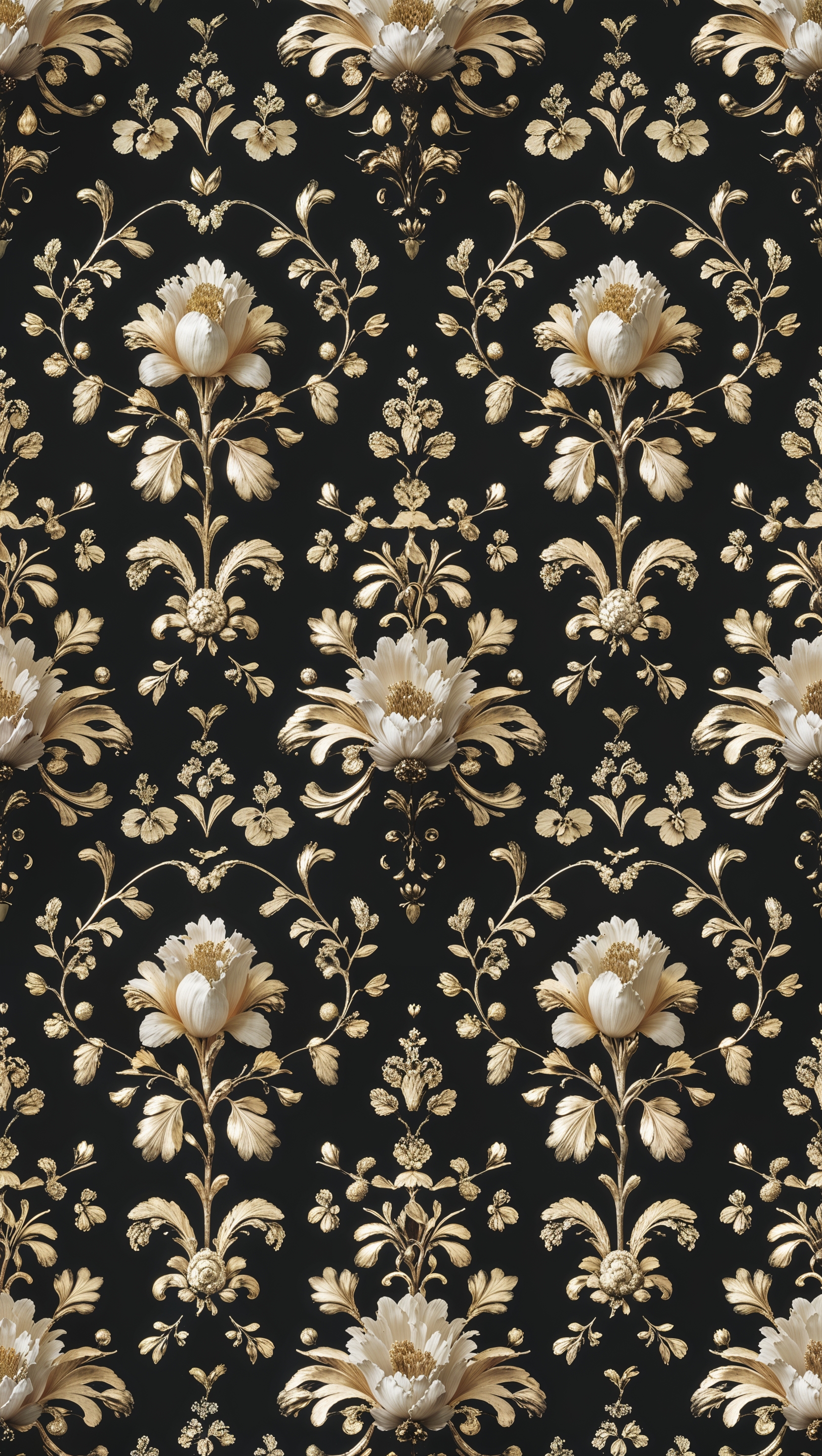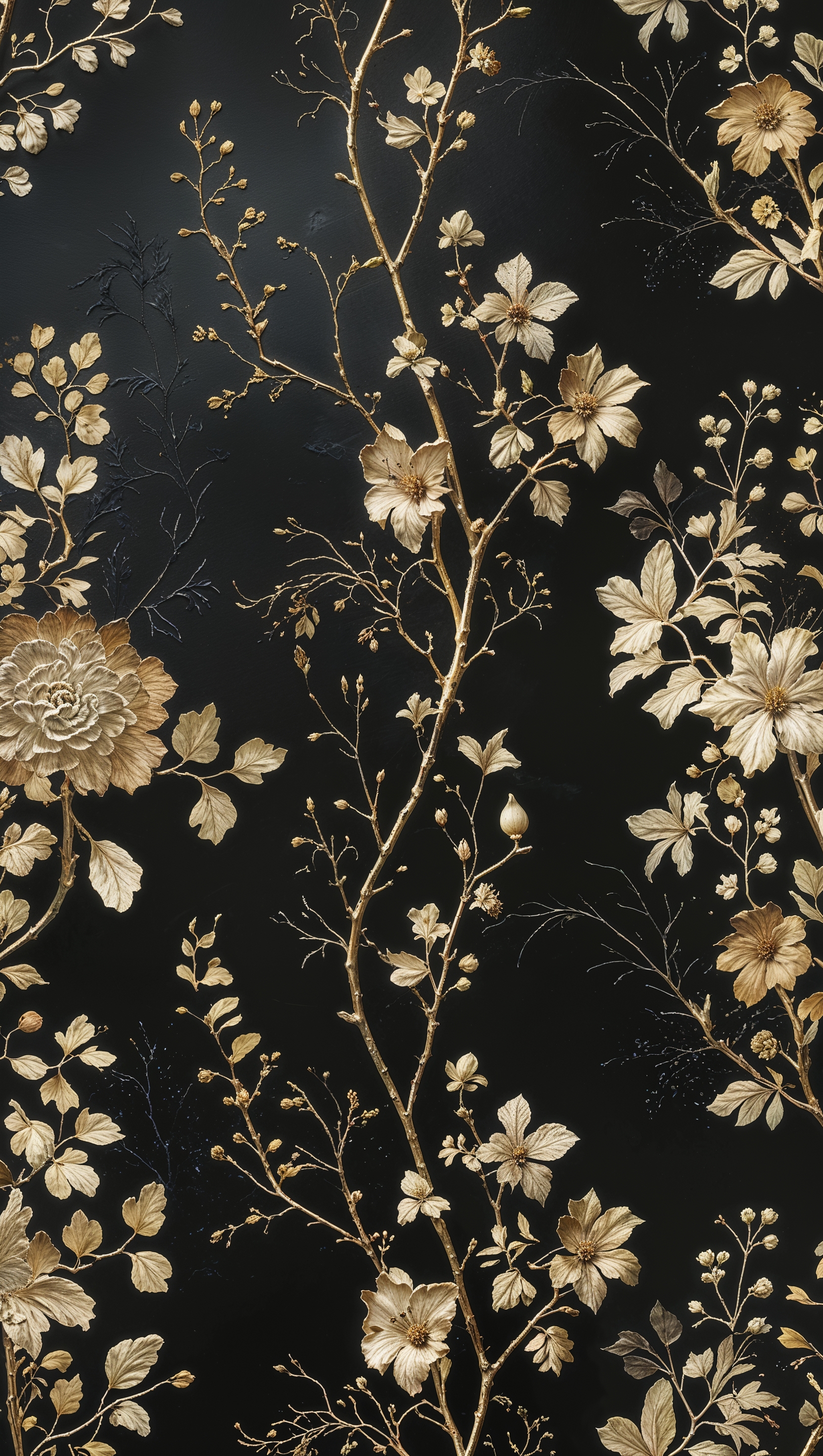1664x2944 Design a black and gold wallpaper with floral decorations