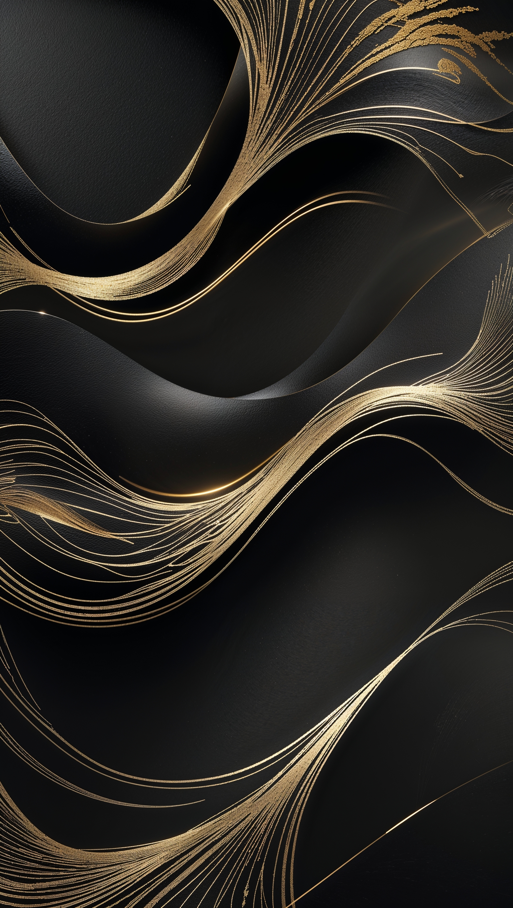 1664x2944 Create a black and gold wallpaper with flowing lines