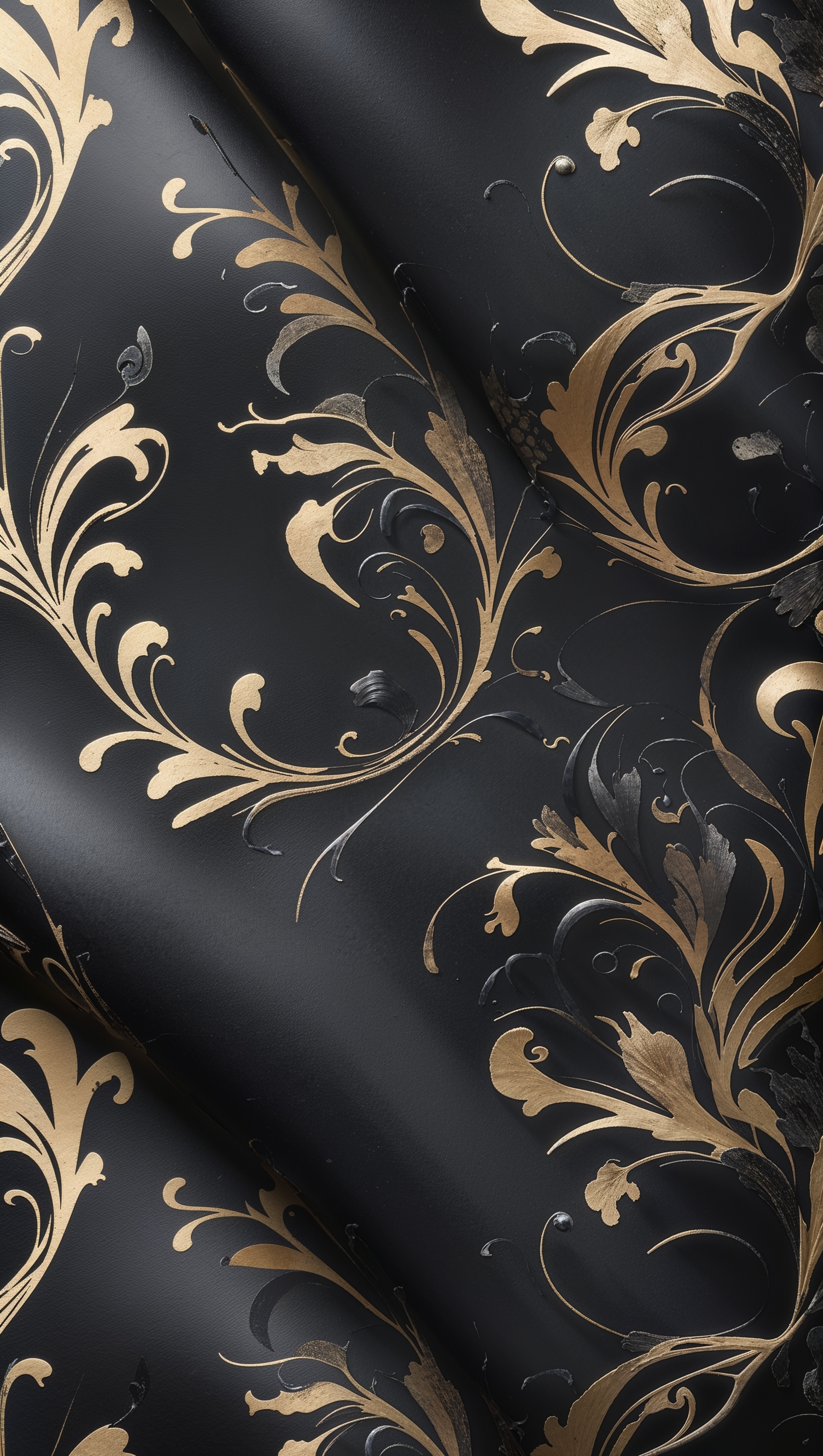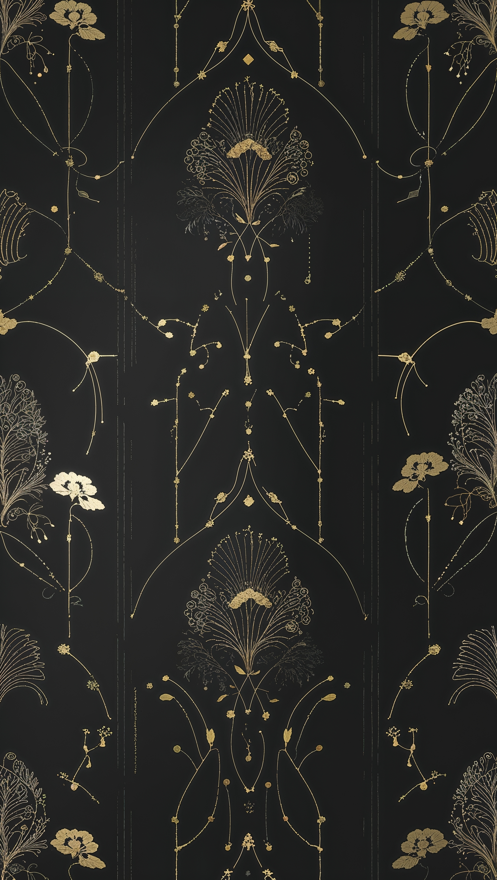 1664x2944 Create a black and gold wallpaper with elegant floral patterns