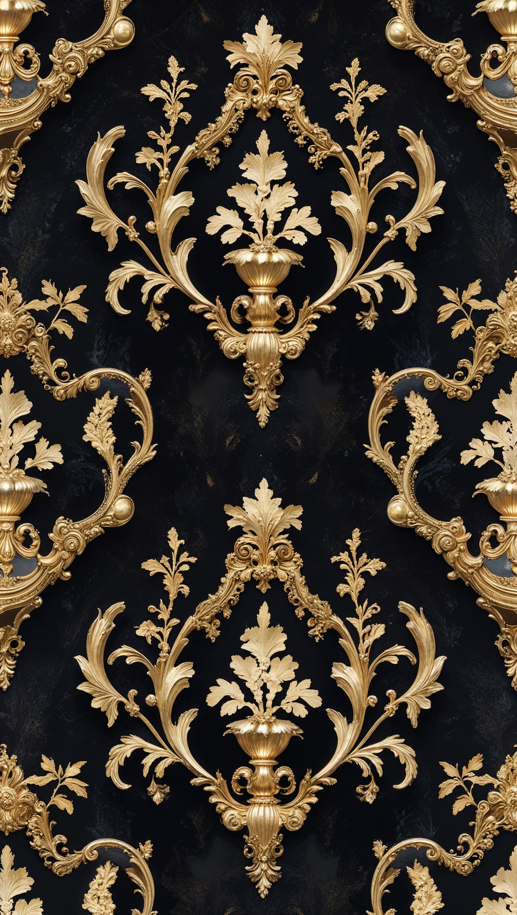 1664x2944 Create a black and gold wallpaper with classical art designs