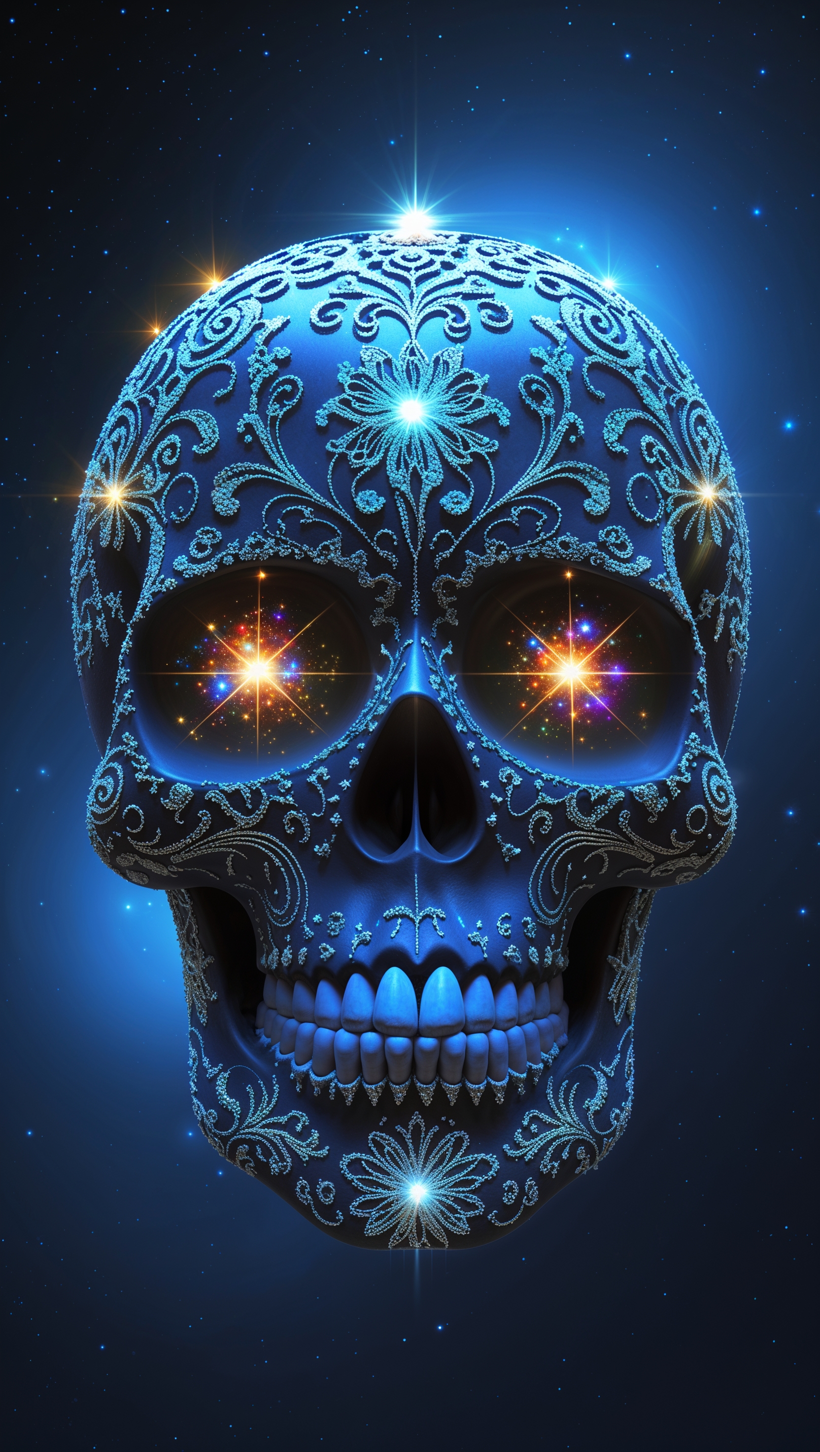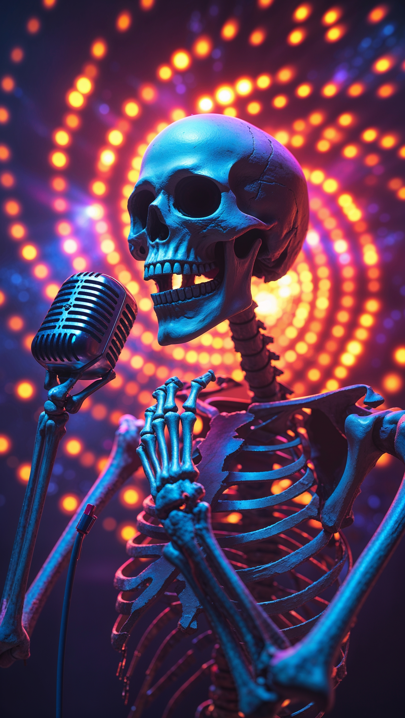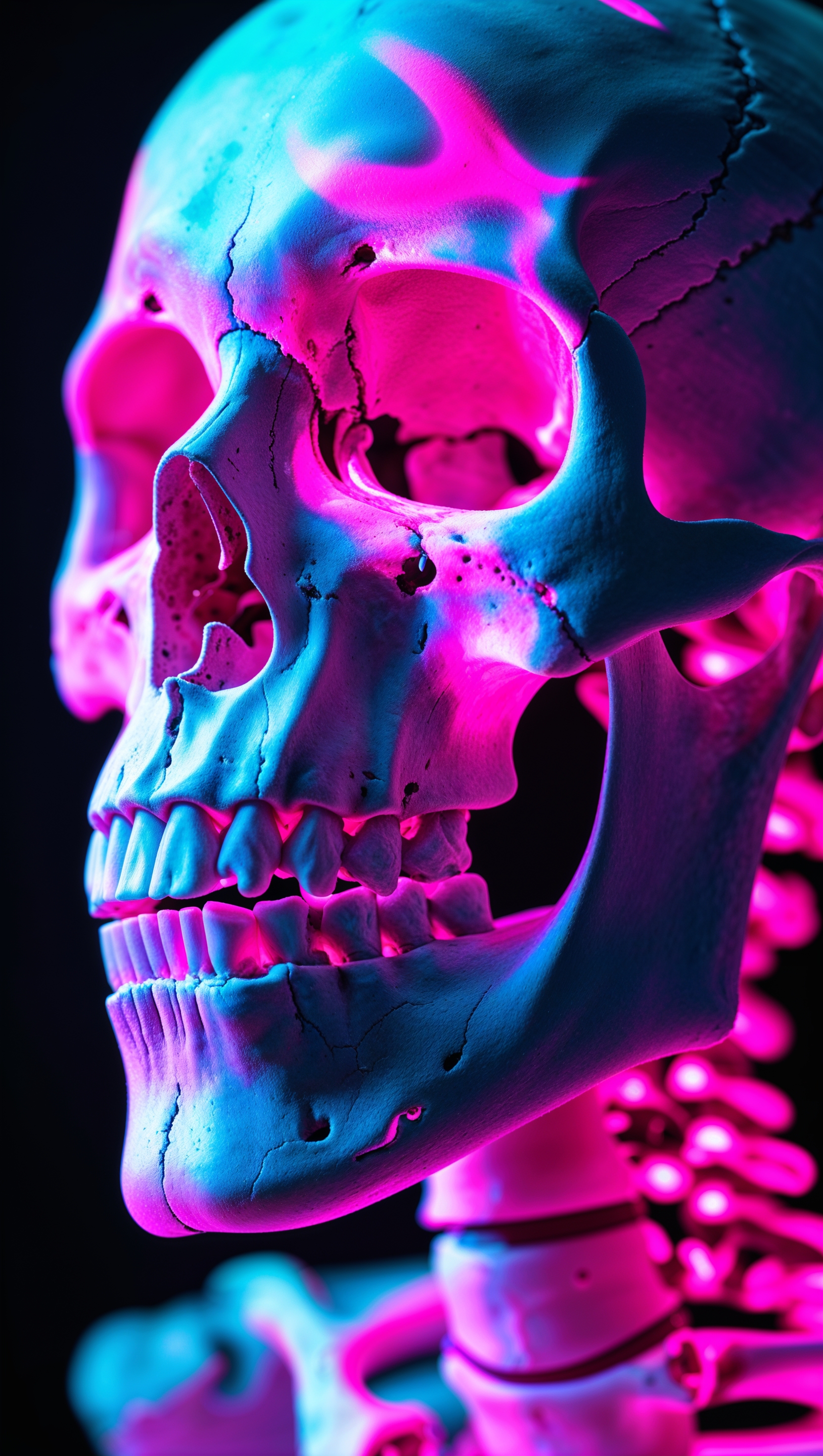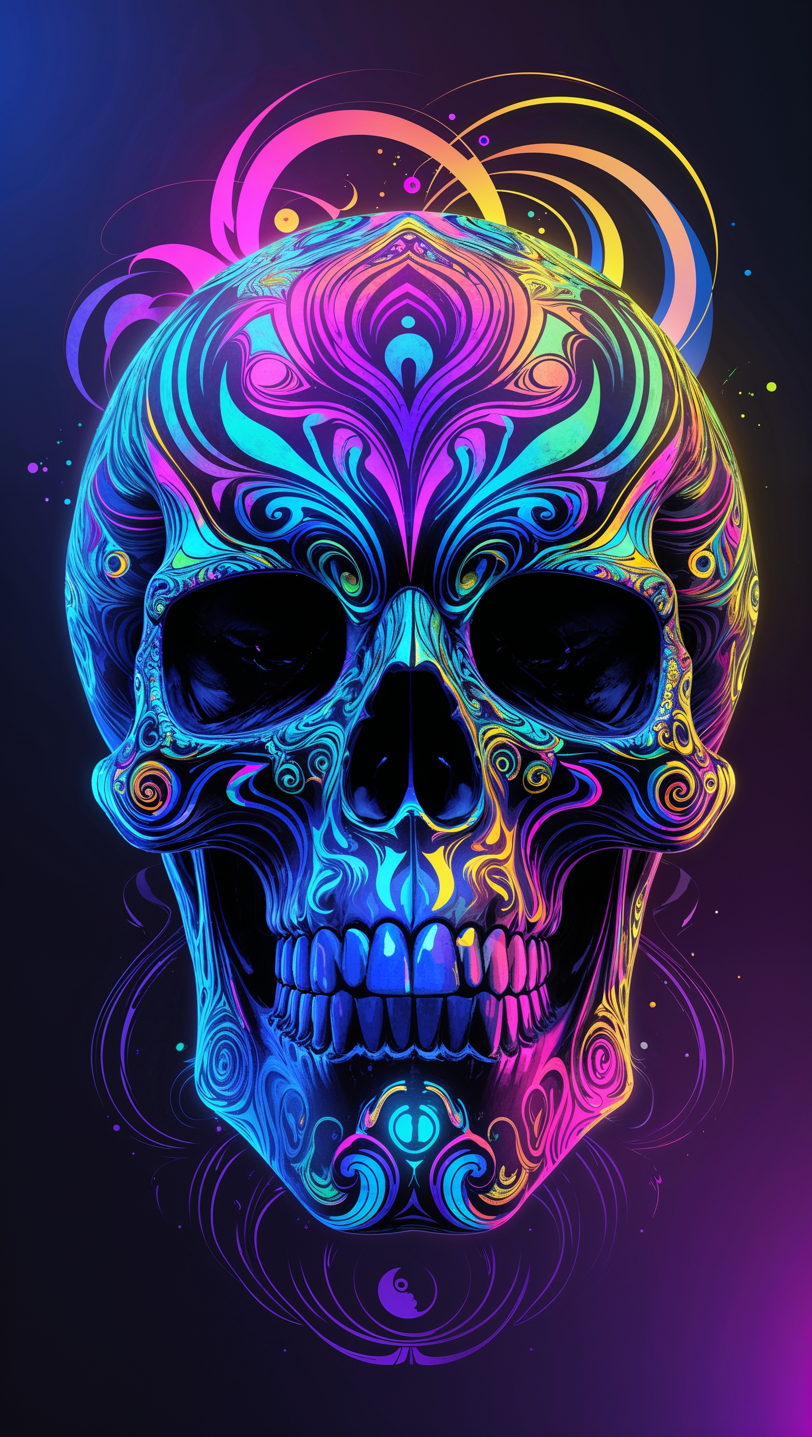 1664x2944 Colorful skeleton with flowers in psychedelic style